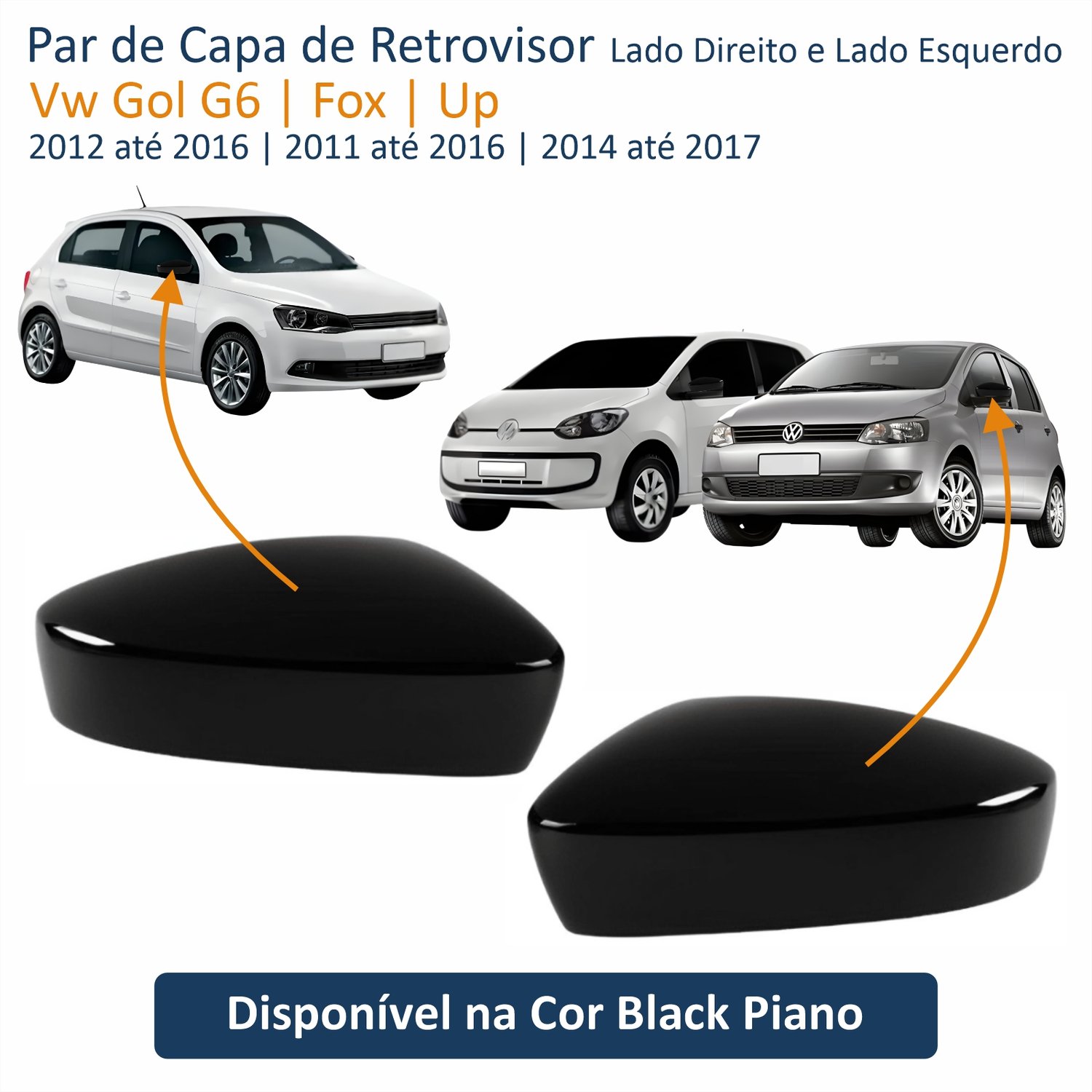 Par de Capa de Retrovisor Vw Gol G6 2012 até 2016 Vw Fox 2011 até 2016 Vw Up 2014 até 2017 Black Piano
