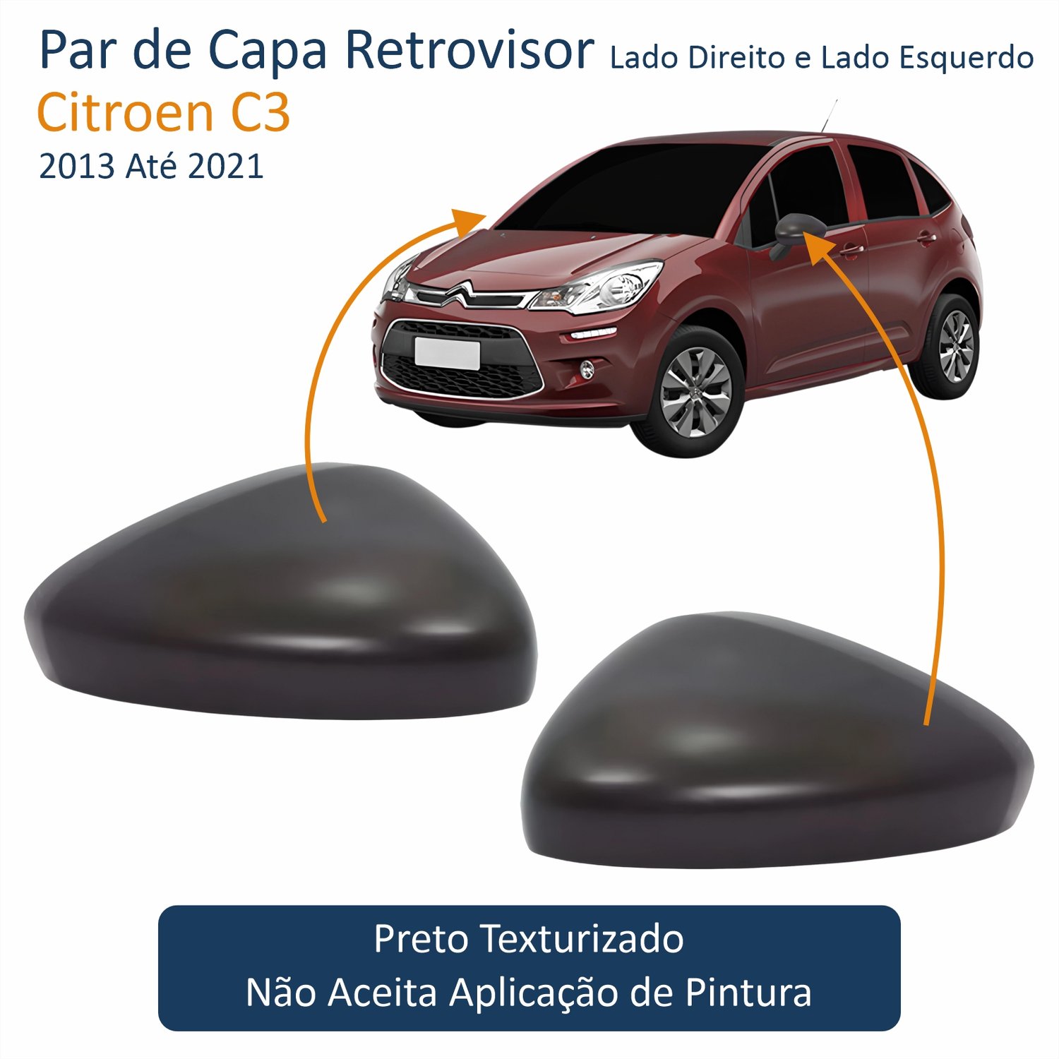 Par de Capa Retrovisor Citroen C3 2013 Até 2021 Texturizado