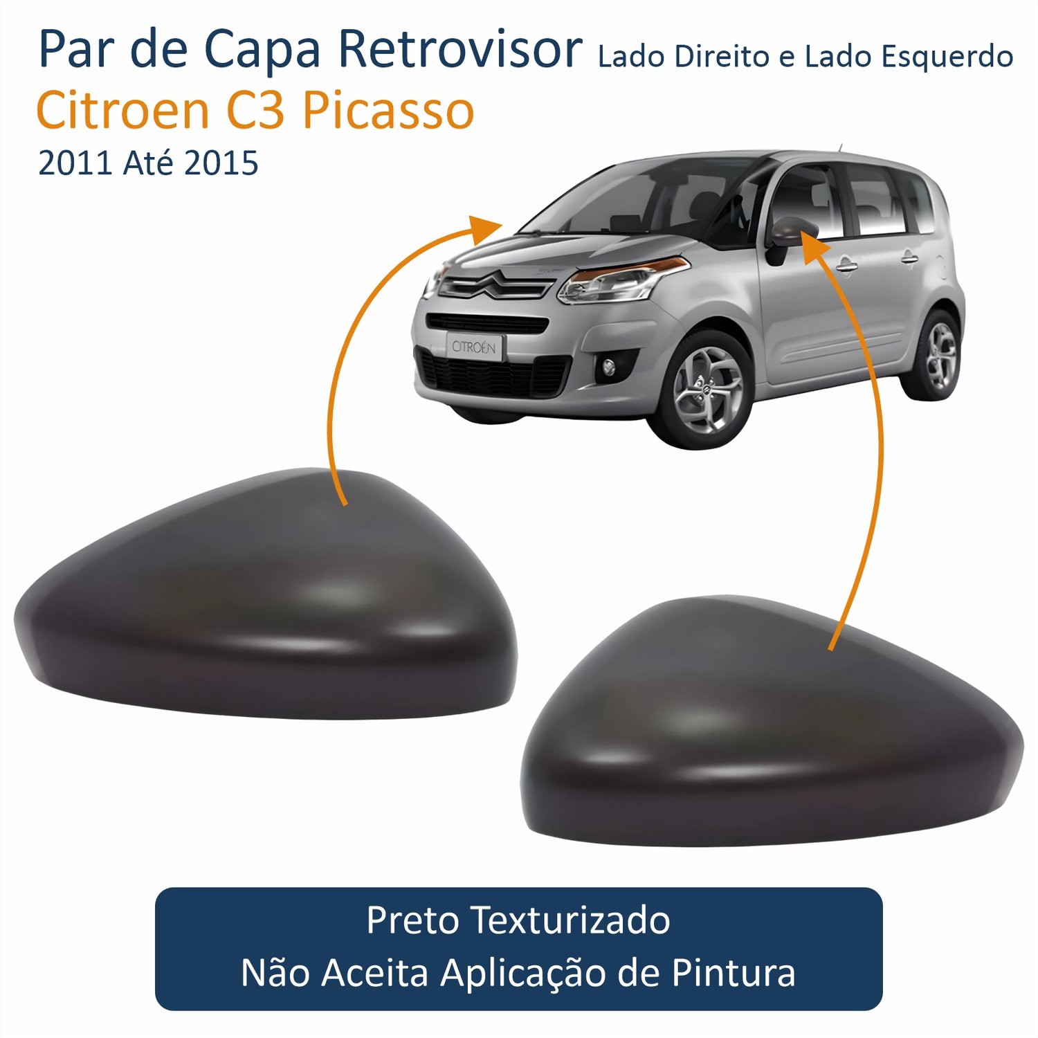 Par de Capa Retrovisor Citroen C3 Picasso 2011 Até 2015 Texturizado