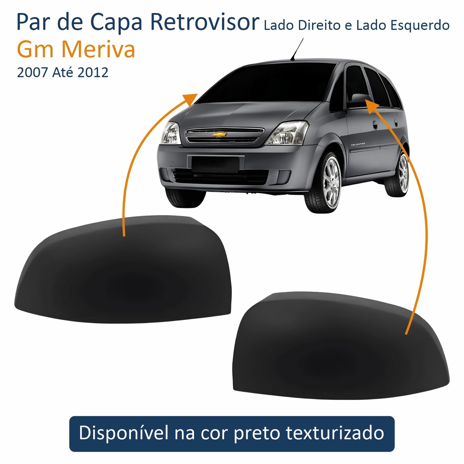 Par de Capa Retrovisor Gm Meriva 2007 Até 2012 Texturizado