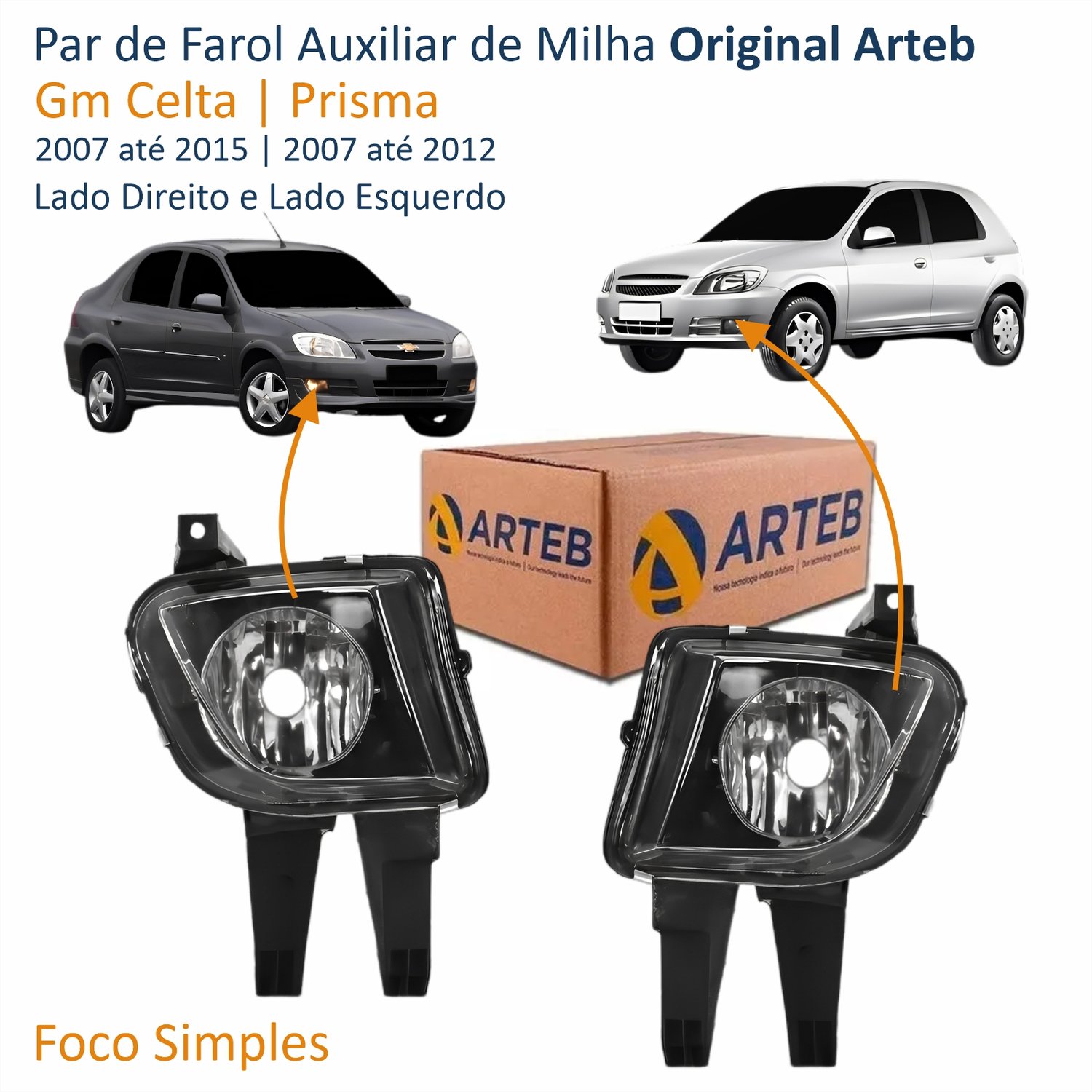 Par de Farol Auxiliar De Milha Gm Celta 2007 Até 2015 Prisma 2007 Até 2012 Original Arteb