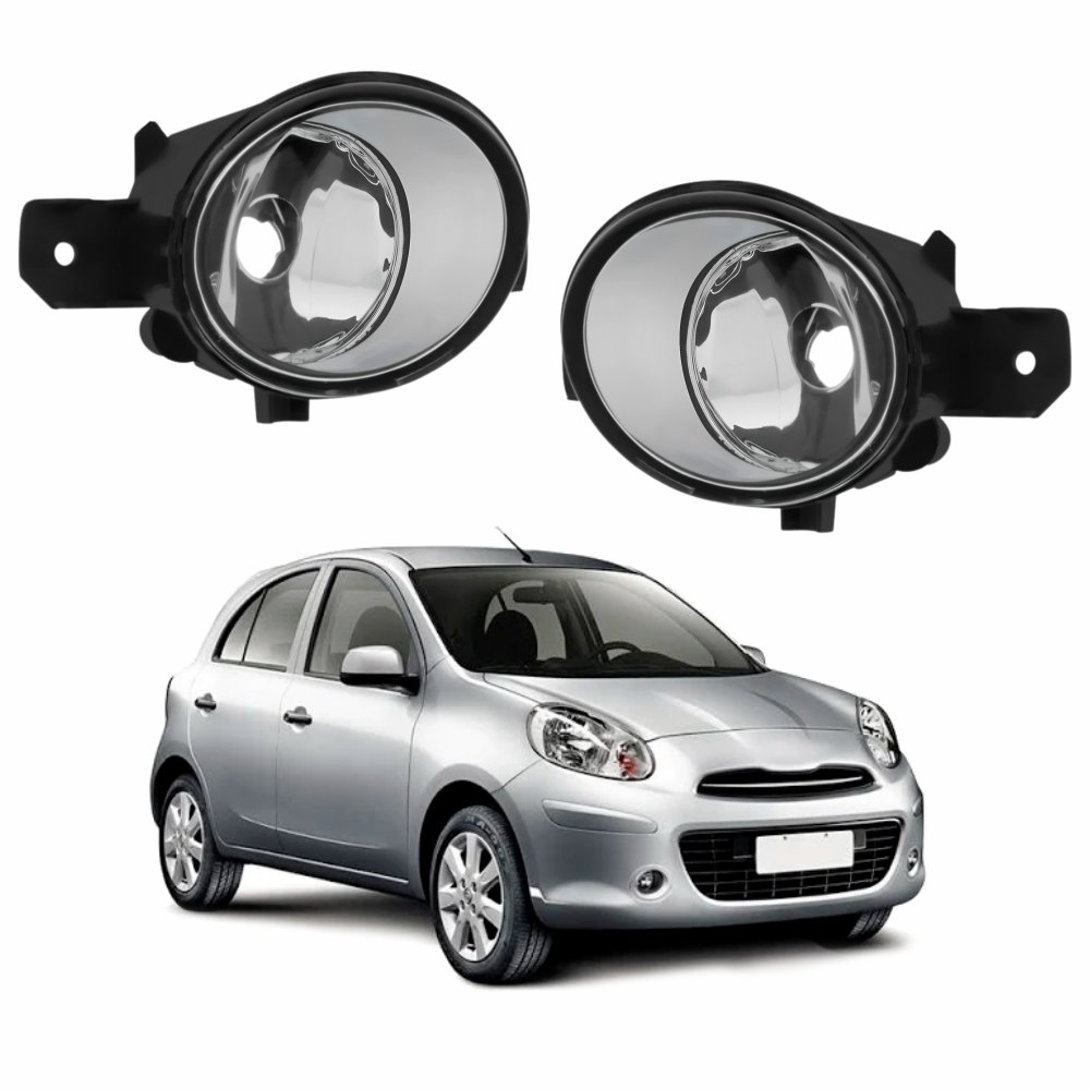 Par de Farol Auxiliar De Milha Nissan March 2011 Até 2017 Lente de Vidro