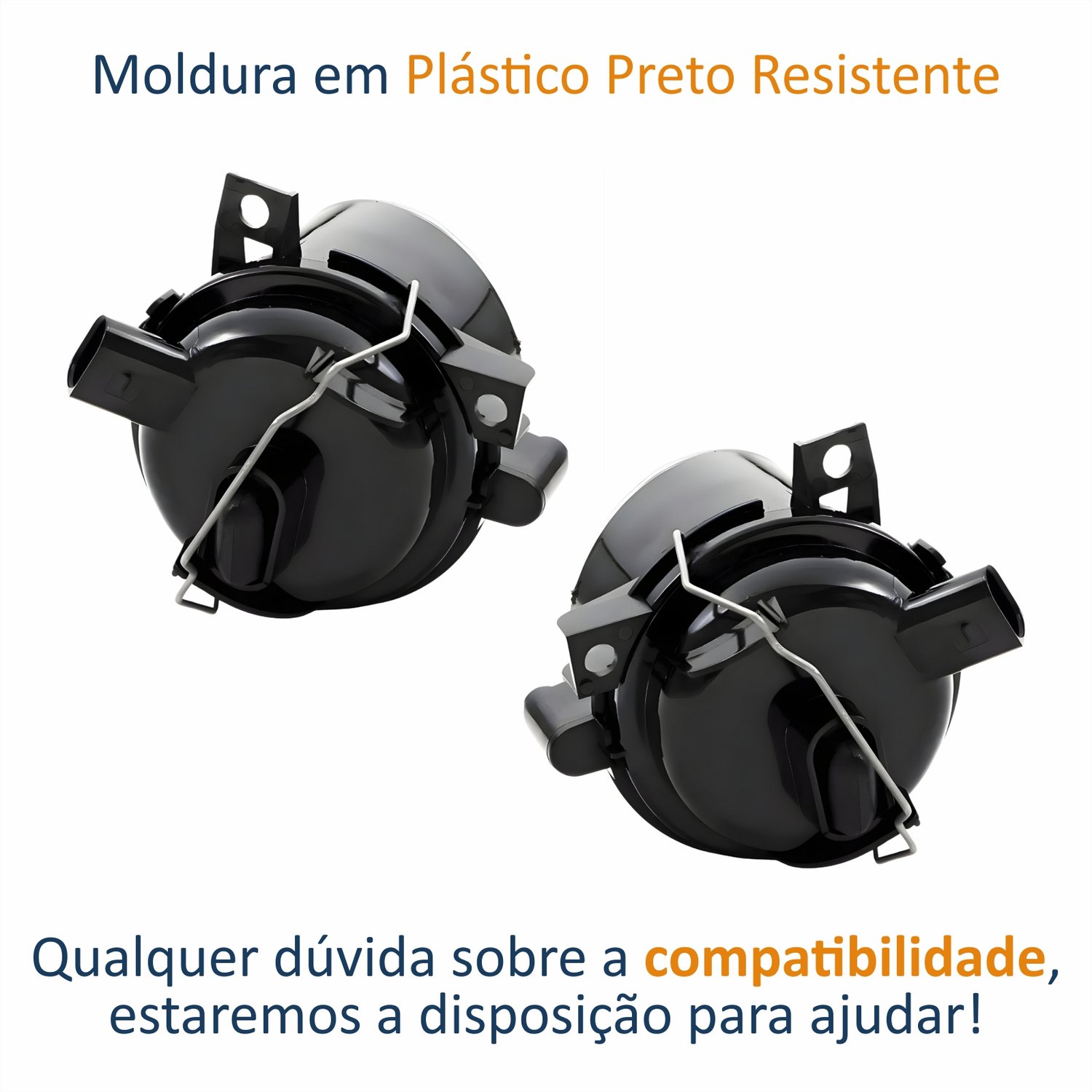 - Material: Moldura em plástico preto resistente