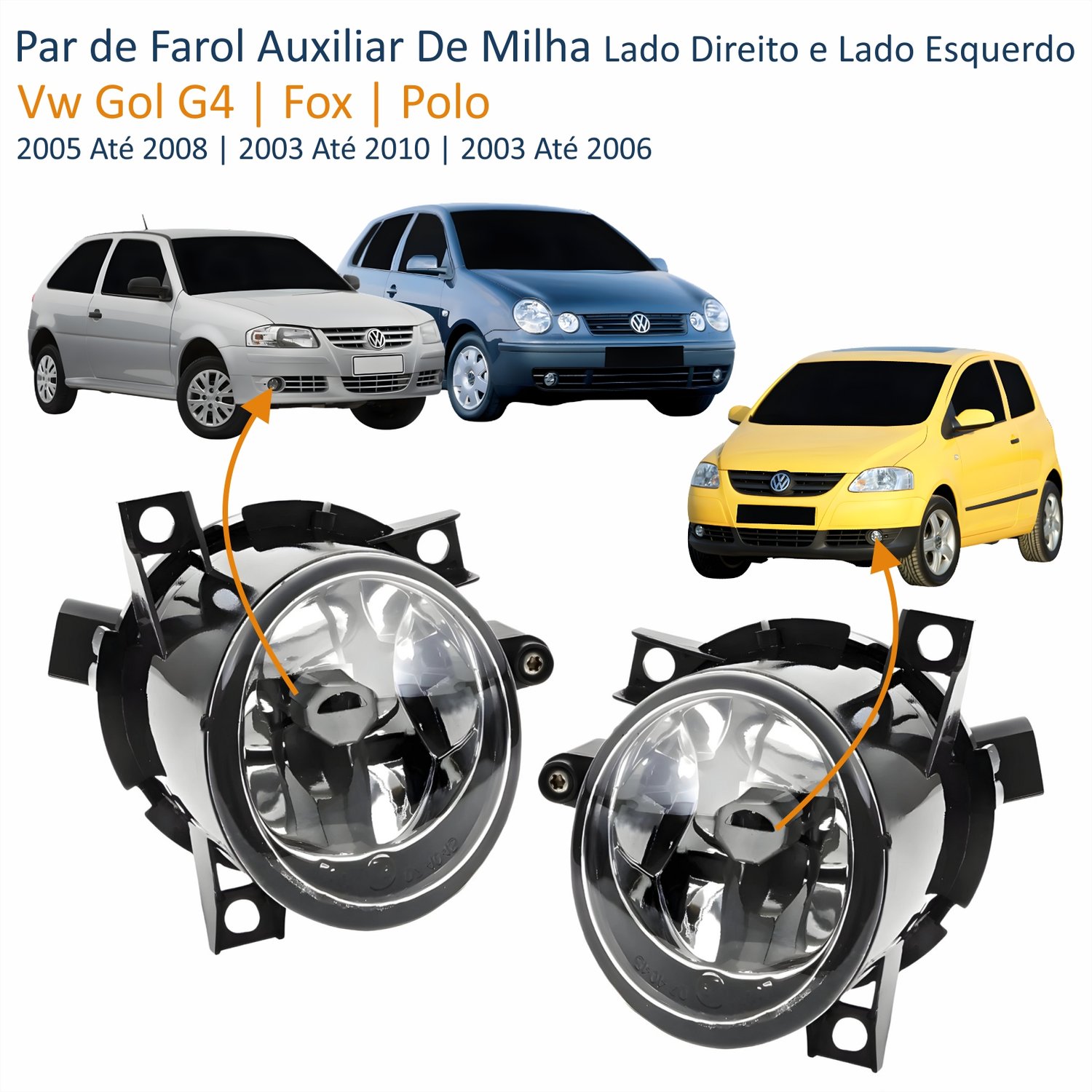 Par de Farol Auxiliar De Milha Vw Gol G4 2005 Até 2008 Fox 2003 Até 2010 Polo 2003 Até 2006 Sem Defletor