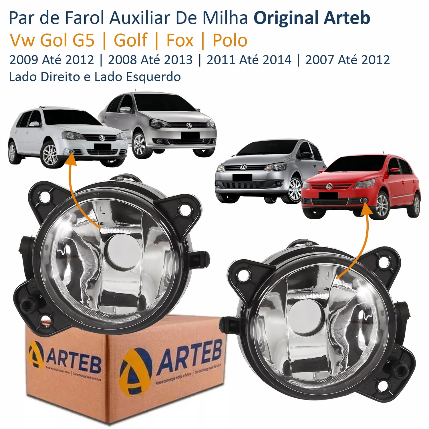 Par de Farol Auxiliar De Milha Vw Gol G5 2009 Até 2012 Golf 2008 Até 2013 Fox 2011 Até 2014 Polo 2007 Até 2012 Original Arteb