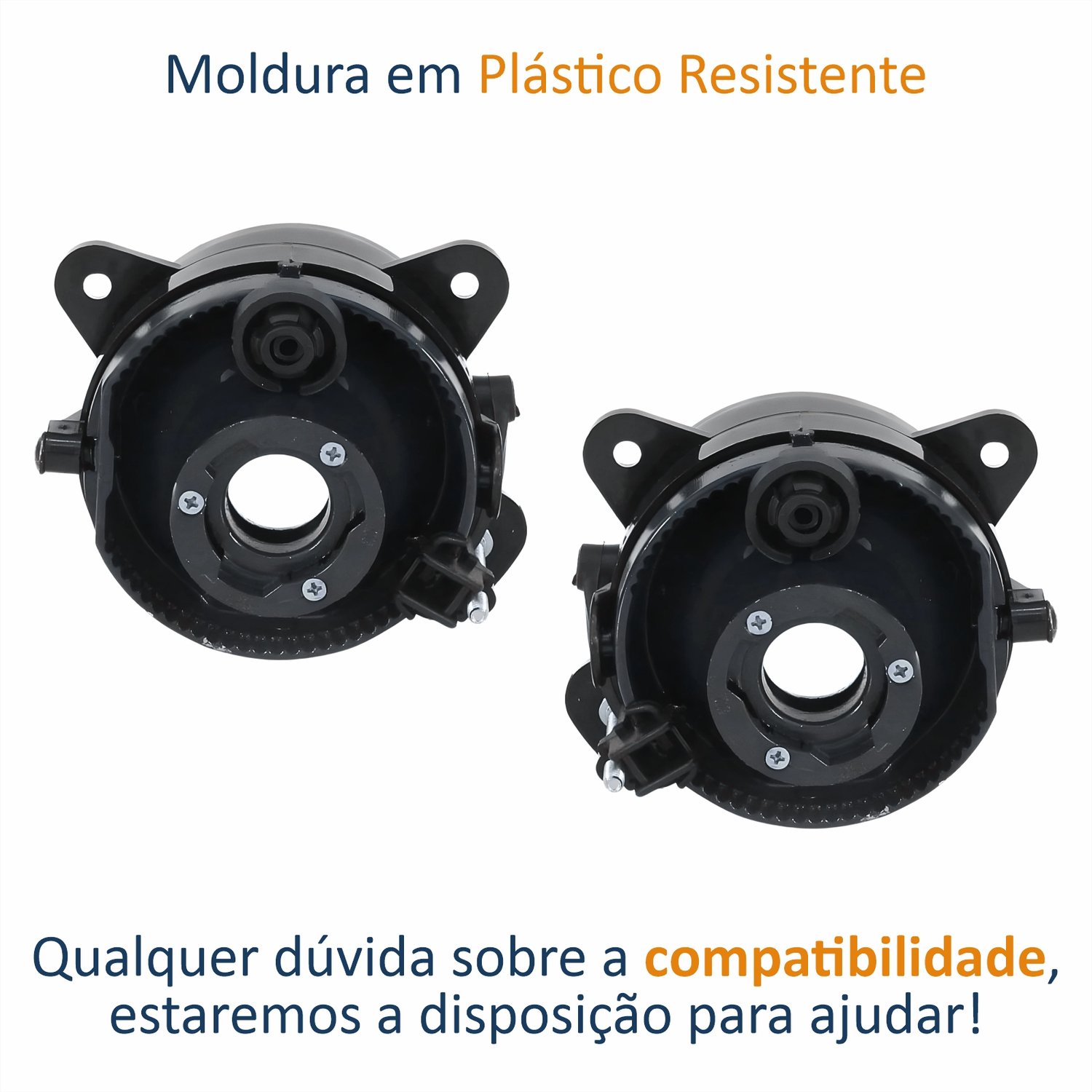 - Material: Moldura em plástico preto resistente
