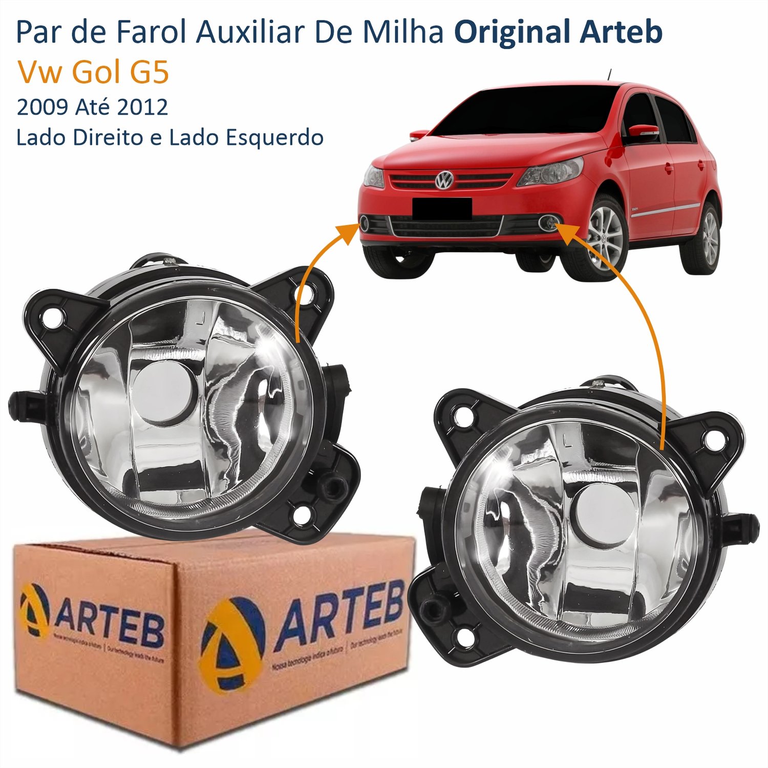 Par de Farol Auxiliar De Milha Vw Gol G5 2009 Até 2012 Original Arteb