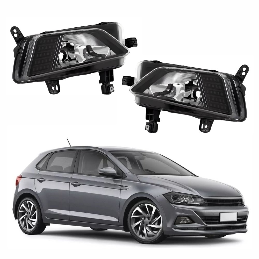 Par de Farol Auxiliar de Milha Vw Polo 2017 Até 2022 Máscara Preta