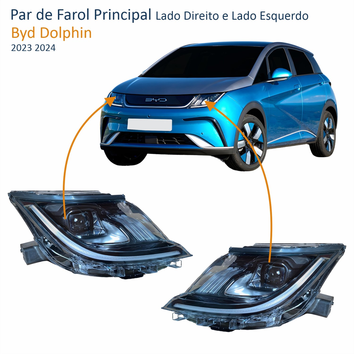 Farol Byd Dolphin 2023 2024 Full Led Lado Direito PassageiroLado: ÚnicoFarol Byd Dolphin 2023 2024 Full Led Lado Esquerdo MotoristaLado: Único