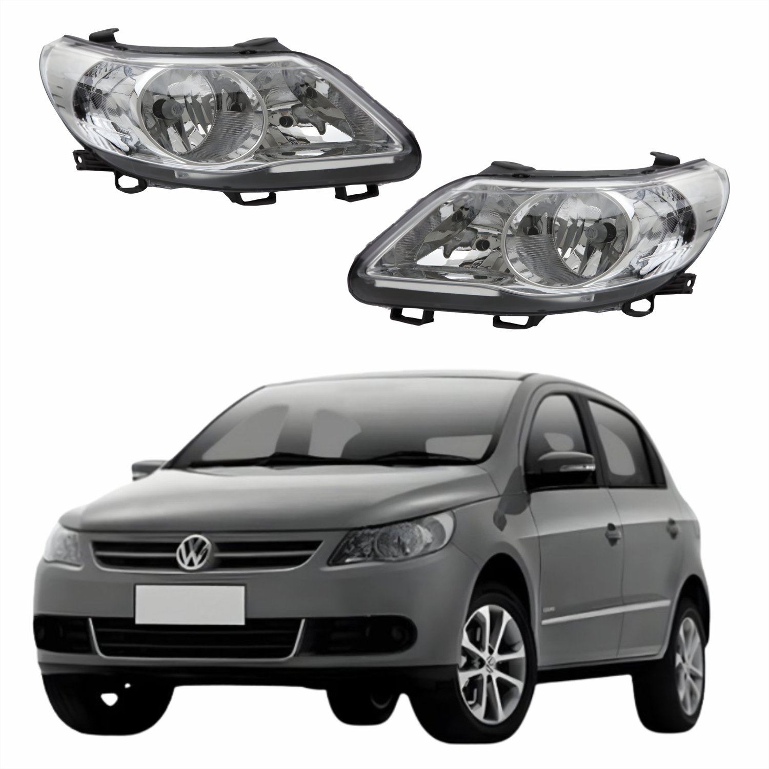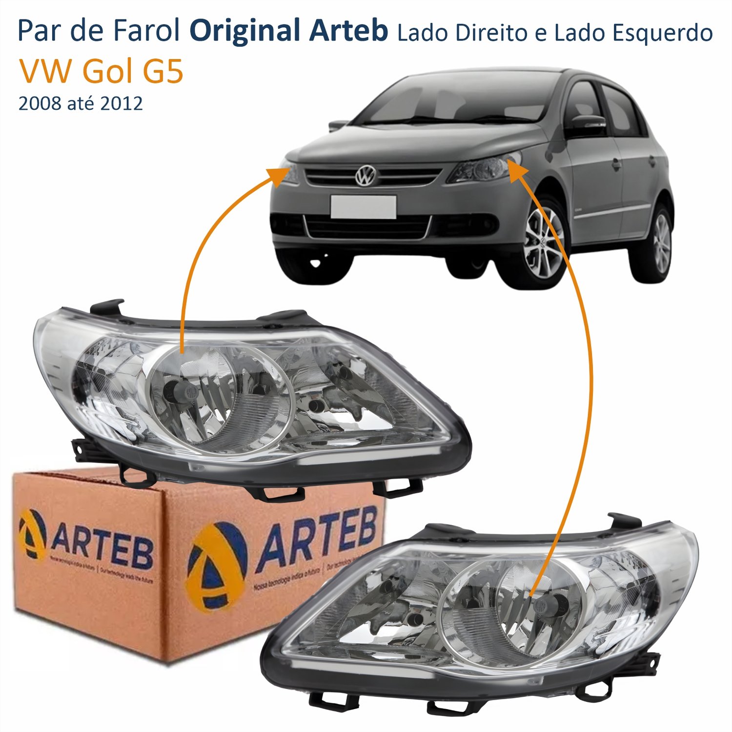 Par de Farol Dianteiro VW Gol G5 2008 Até 2012 Original Arteb Foco Duplo Máscara Cromomix