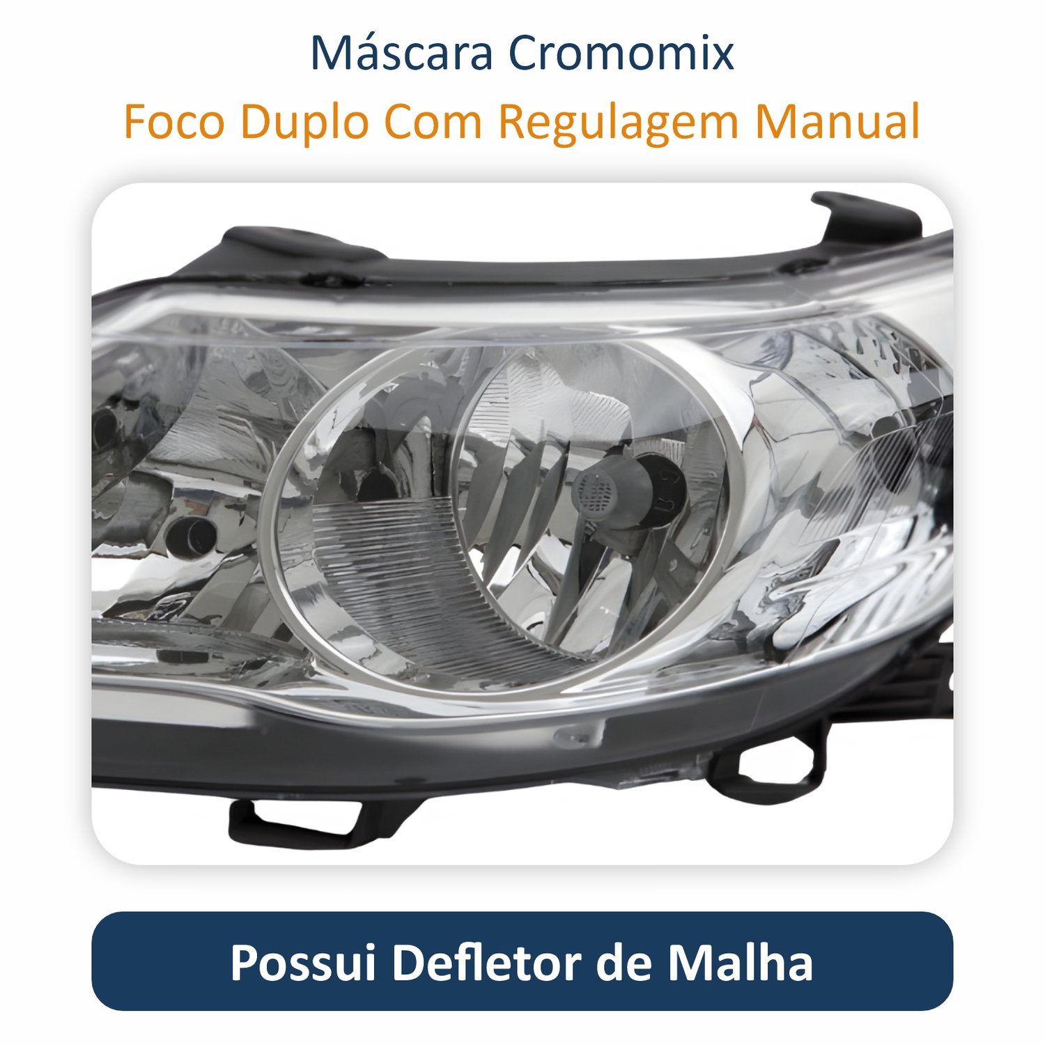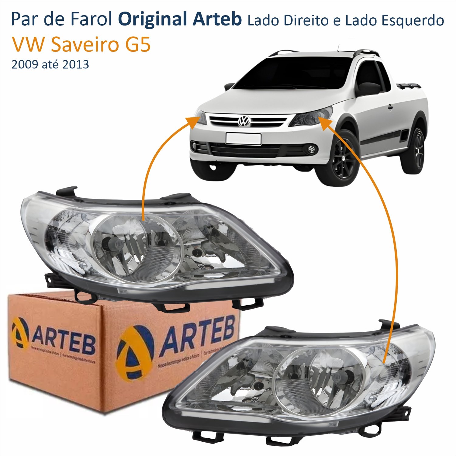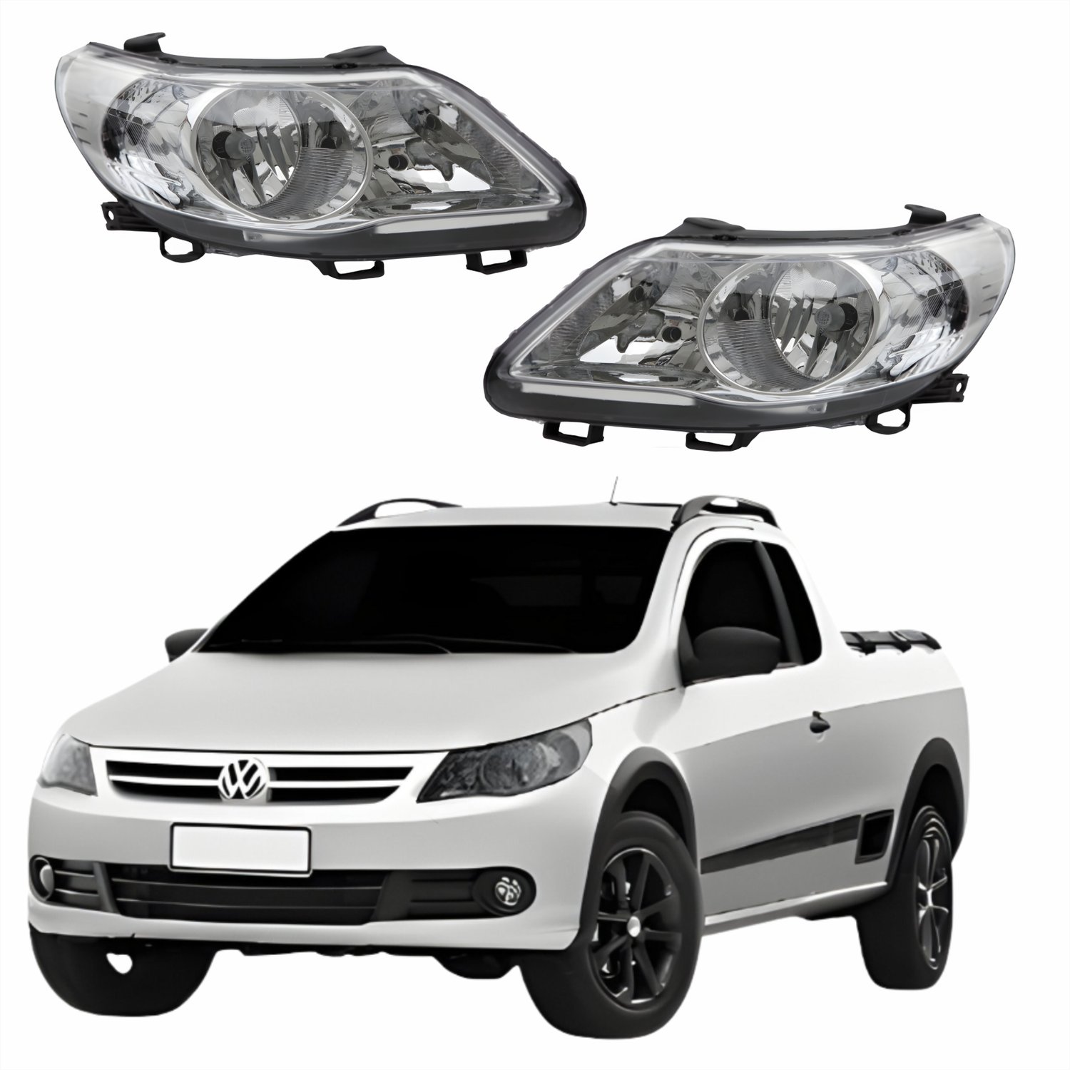 Par de Farol Dianteiro VW Saveiro G5 2009 Até 2013 Original Arteb Foco Duplo Máscara Cromomix