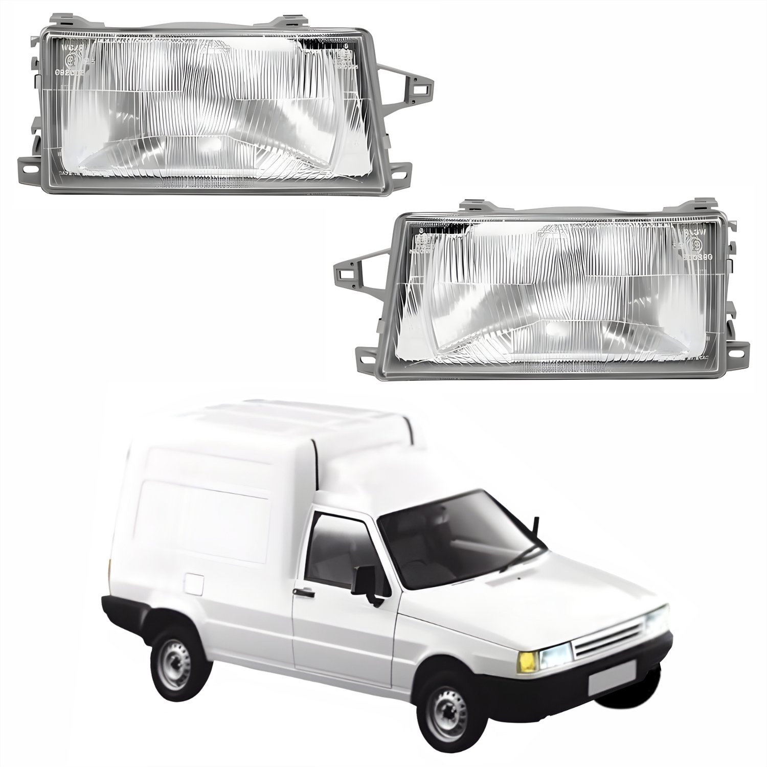 Par de Farol Fiat Fiorino 1991 Até 2003 Lente De Vidro