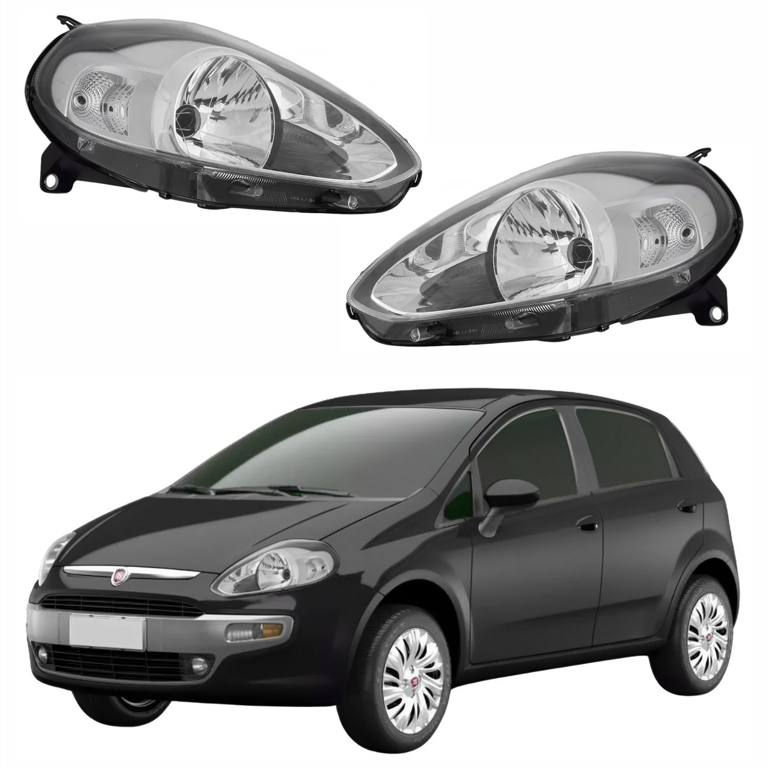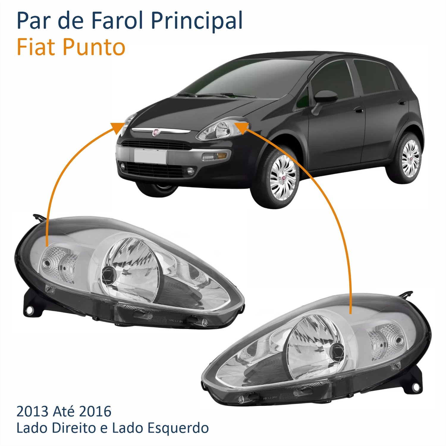 Par de Farol Fiat Punto 2013 Até 2016 Máscara Cromada