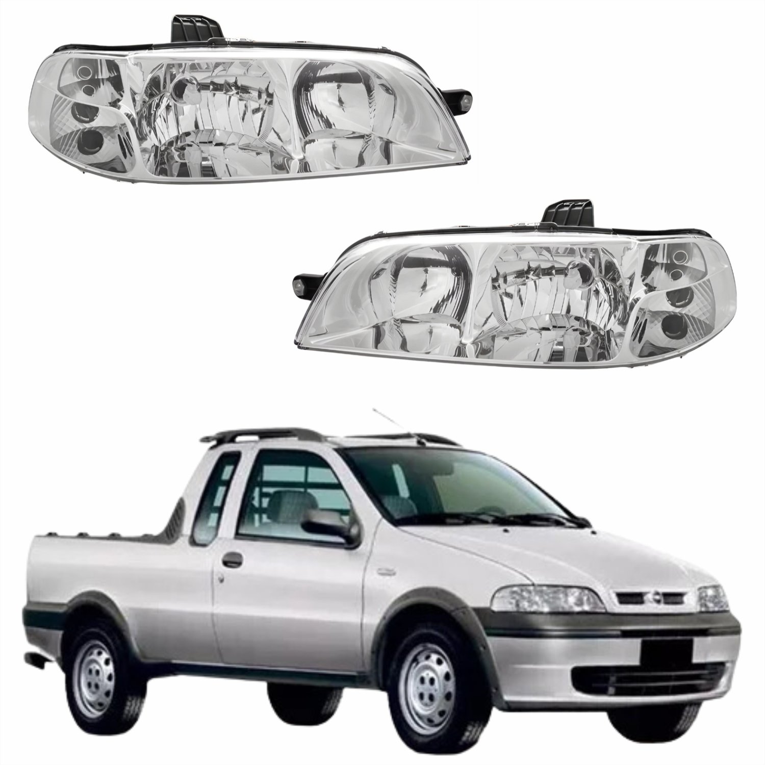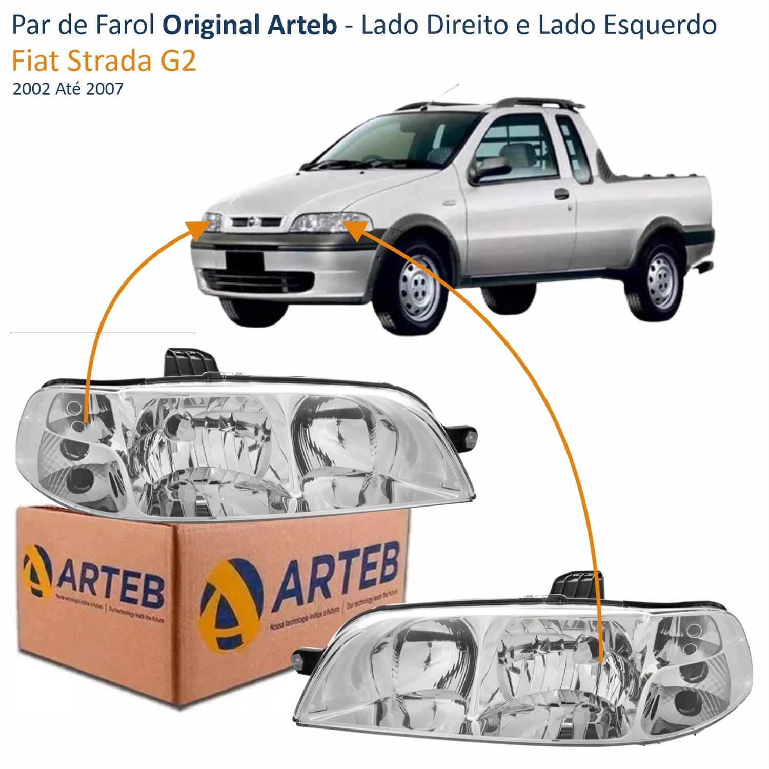 Par de Farol Fiat Strada G2 2002 Até 2007 Original Arteb Foco Duplo Carcaça Preta