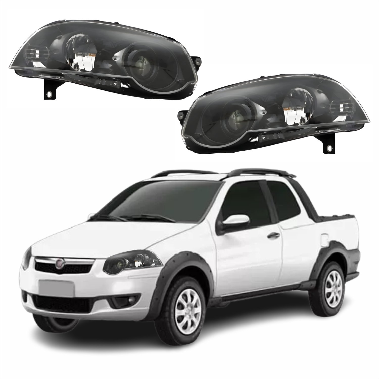 Par de Farol Fiat Strada G4 2008 Até 2016 Foco Duplo Máscara Negra com Anel Preto
