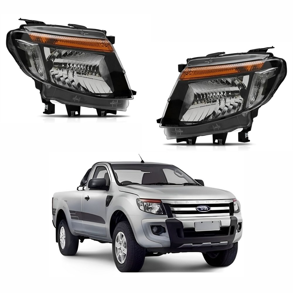 Par de Farol Ford Ranger 2013 Até 2016 Máscara Negra