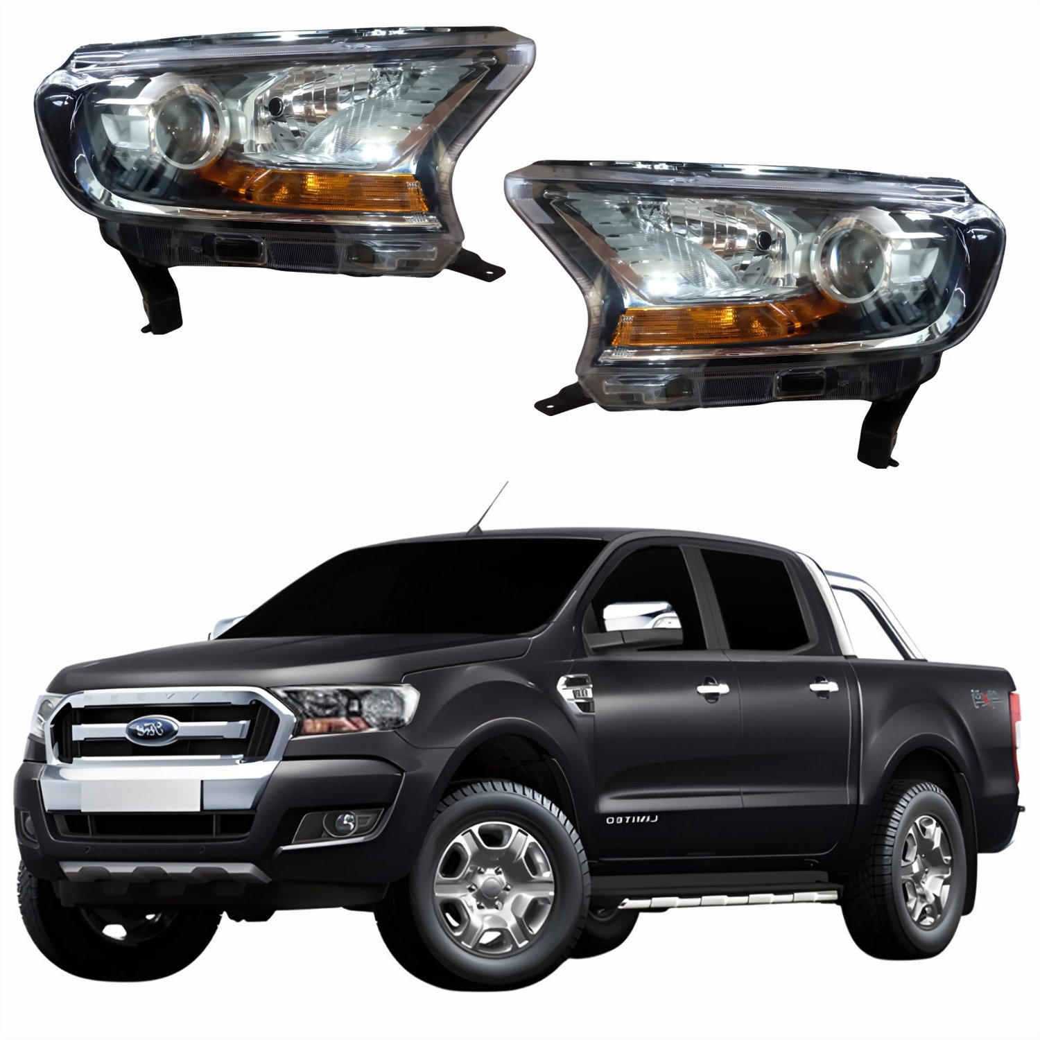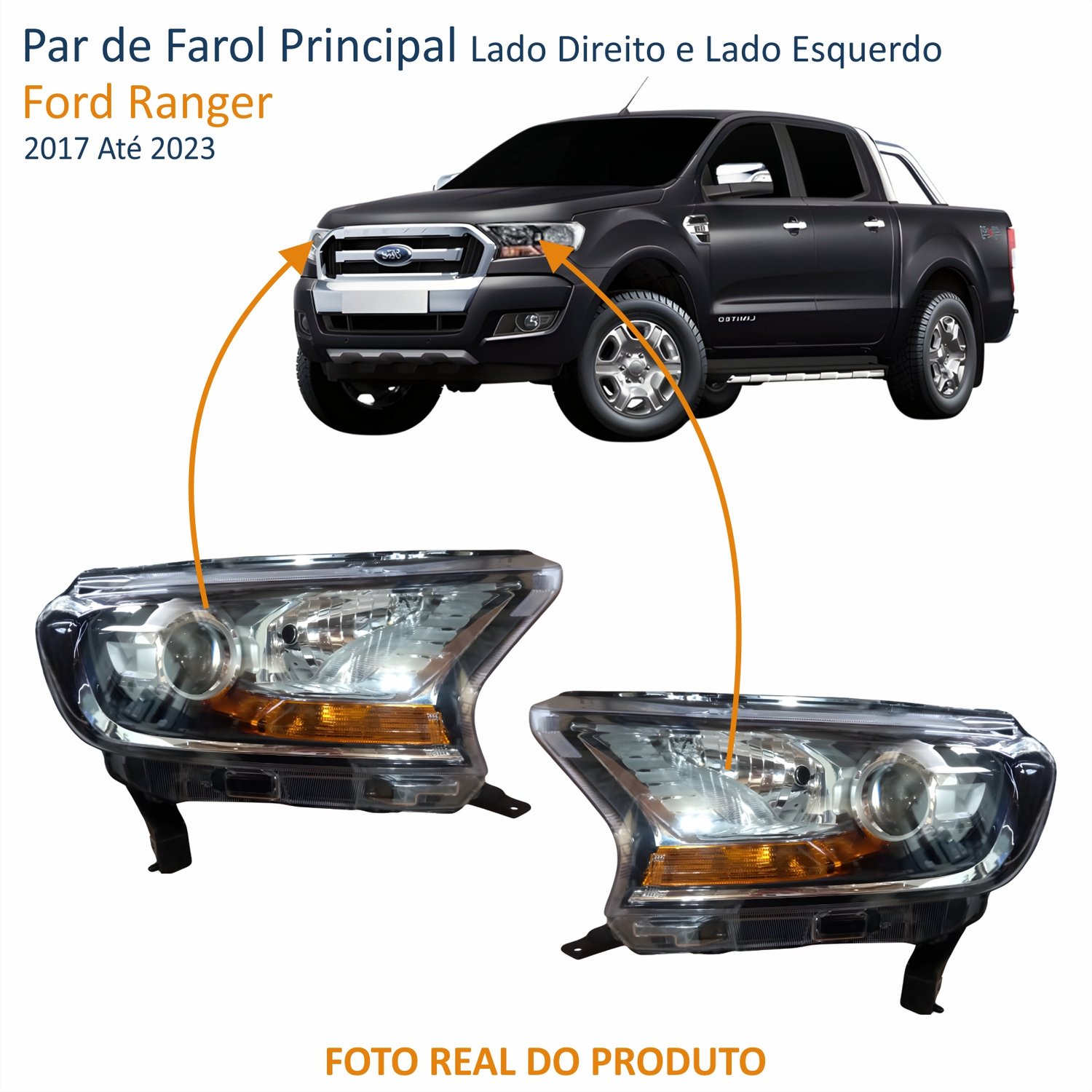 Farol Ford Ranger 2017 Até 2023 Máscara Negra Com Projetor Lado Direito PassageiroLado: ÚnicoFarol Ford Ranger 2017 Até 2023 Máscara Negra Com Projetor Lado Esquerdo MotoristaLado: Único