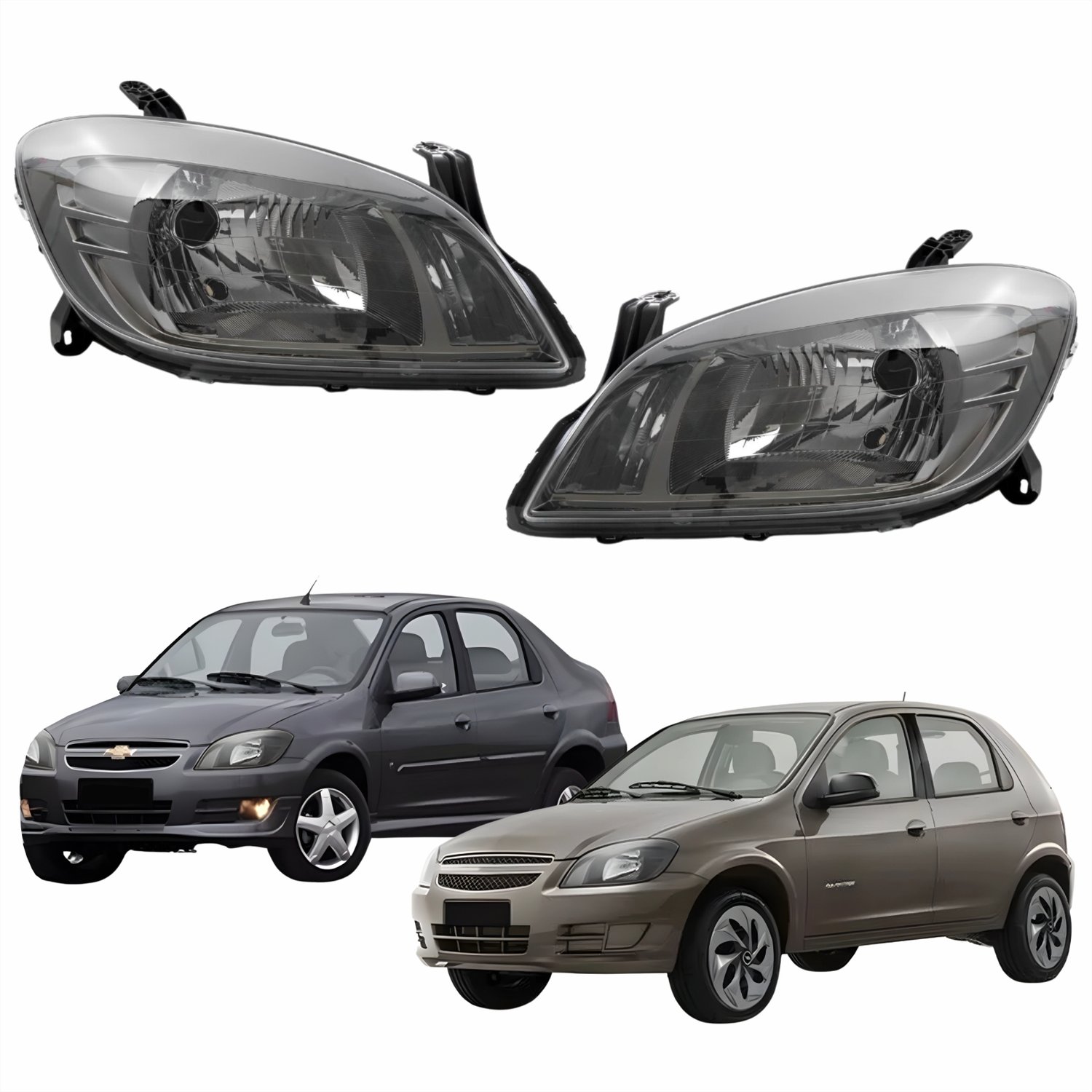 Par de Farol Gm Celta Prisma 2012 Até 2014 Cromomix