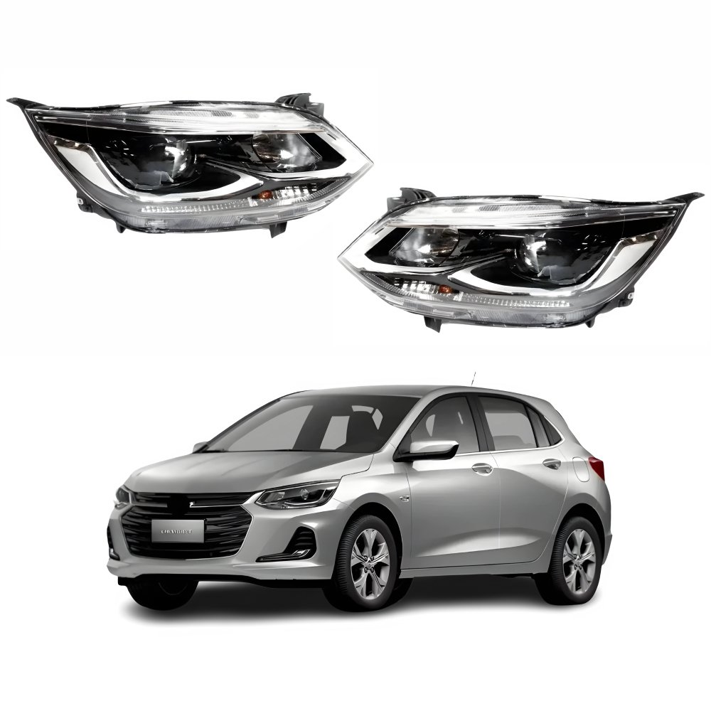 Par de Farol Gm Onix 2020 Até 2023 Sem Led Com Projetor Manual Cromado
