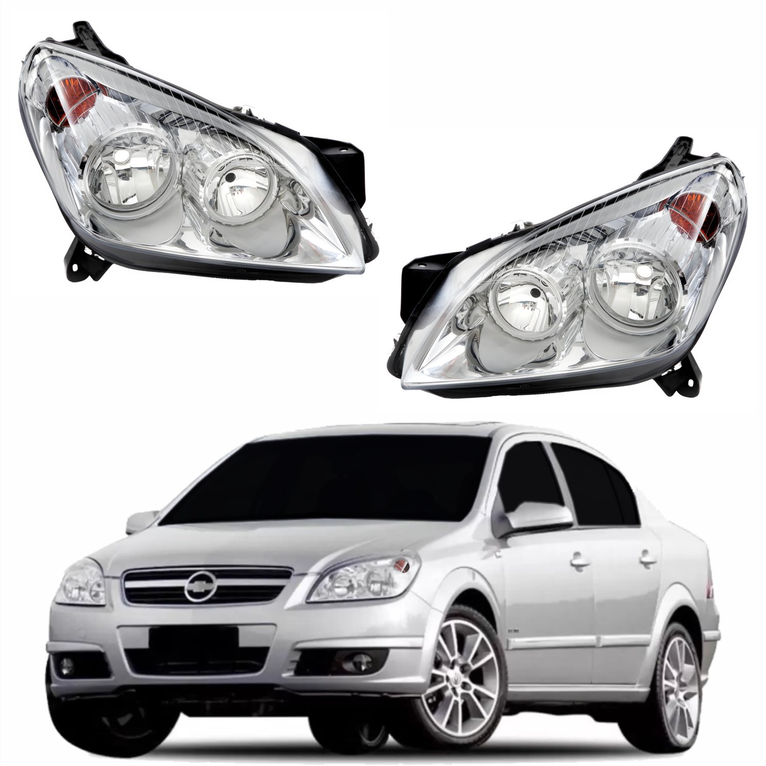 Par de Farol Gm Vectra 2006 Até 2008 Máscara Cromada