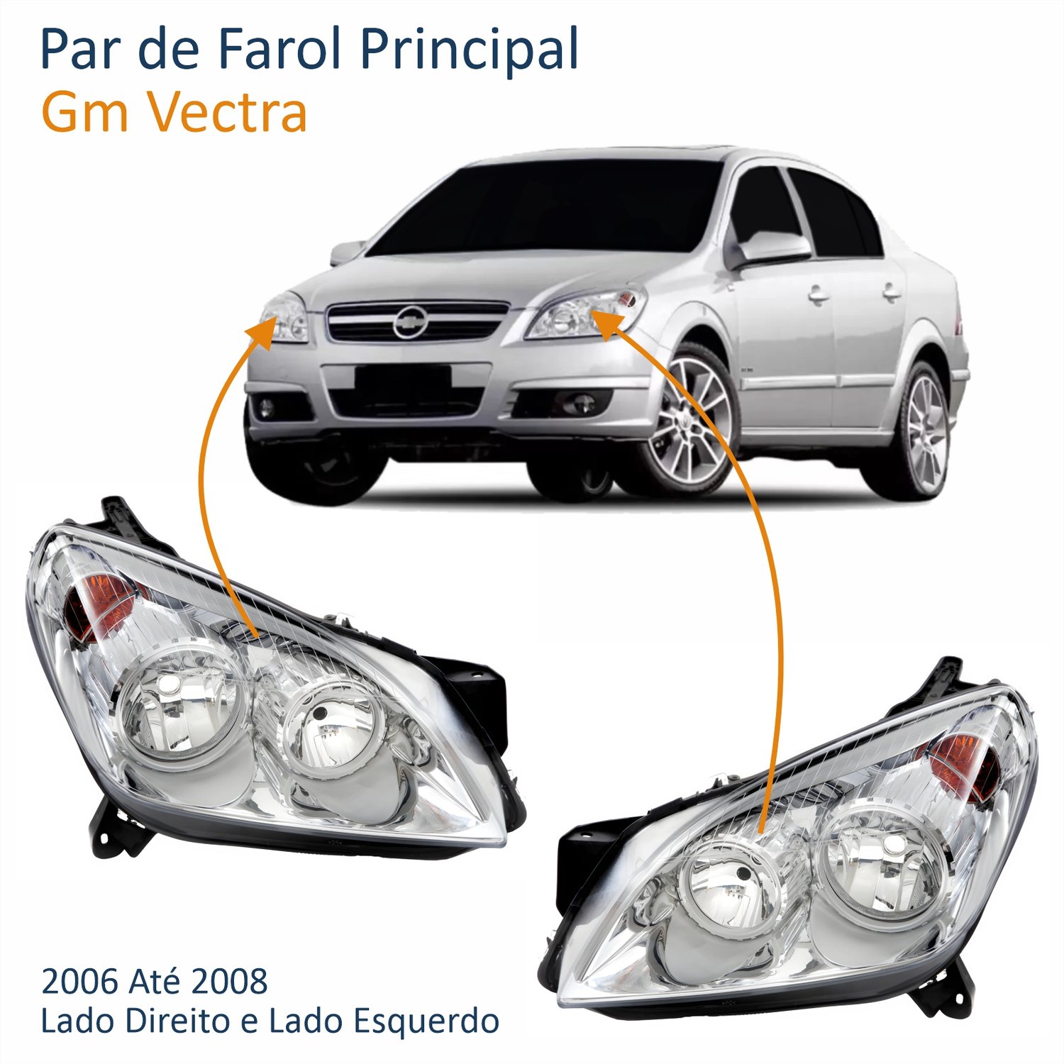 Par de Farol Gm Vectra 2006 Até 2008 Máscara Cromada