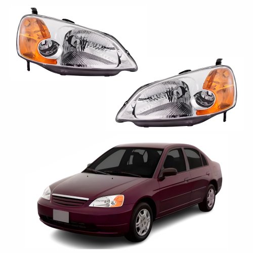 Par de Farol Honda Civic 2001 Até 2004 Com Pisca Âmbar
