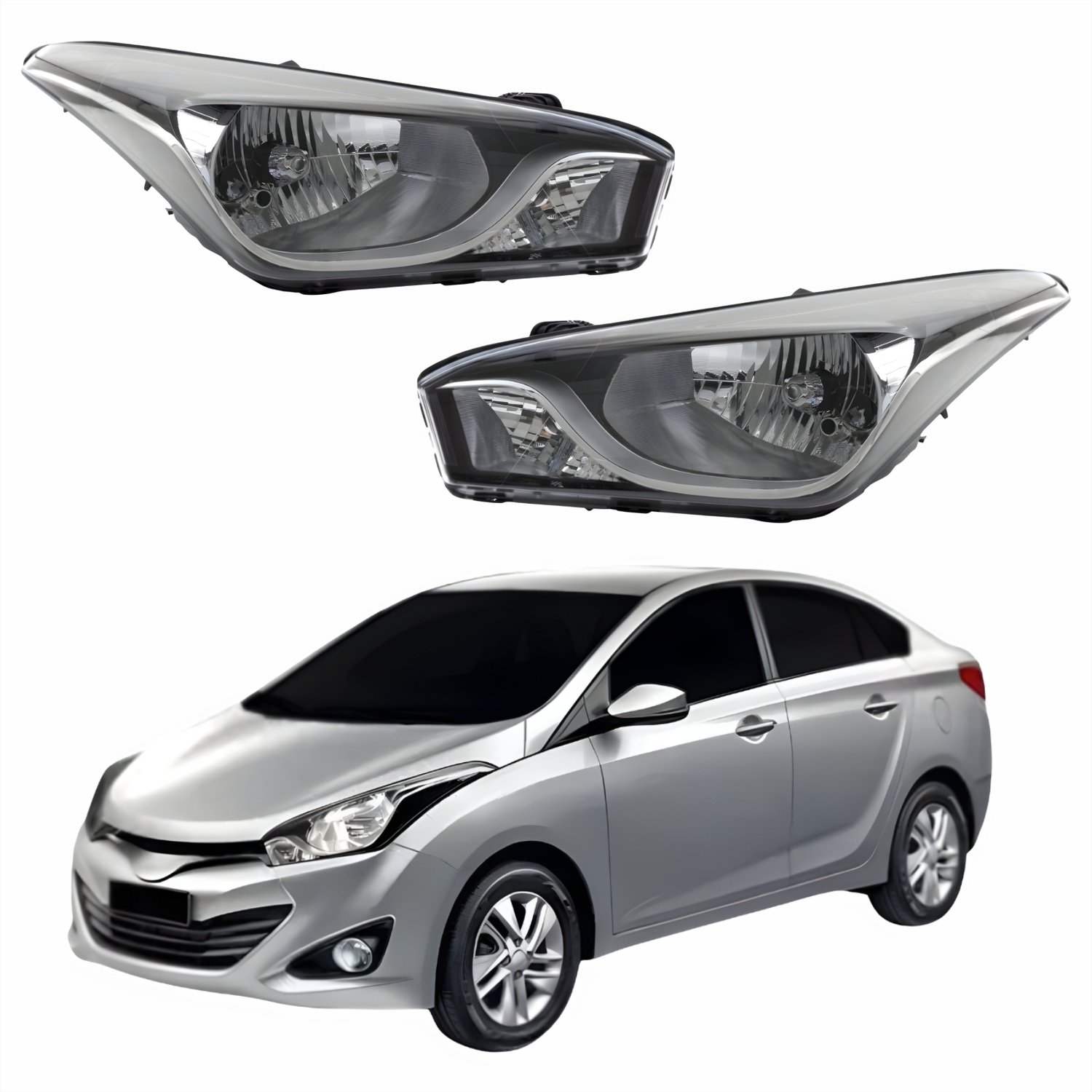 Par de Farol Hyundai HB20X Sedan 2012 Até 2016 Original Arteb Máscara Negra Com Friso Cromado