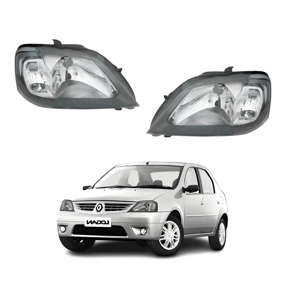 Farol Renault Logan 2007 Até 2010 Máscara Cinza Lado Direito PassageiroLado: ÚnicoFarol Renault Logan 2007 Até 2010 Máscara Cinza Lado Esquerdo MotoristaLado: Único