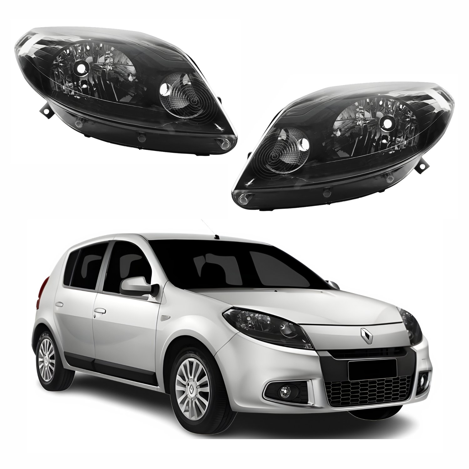 Par de Farol Renault Sandero 2012 2013 2014 Máscara Negra