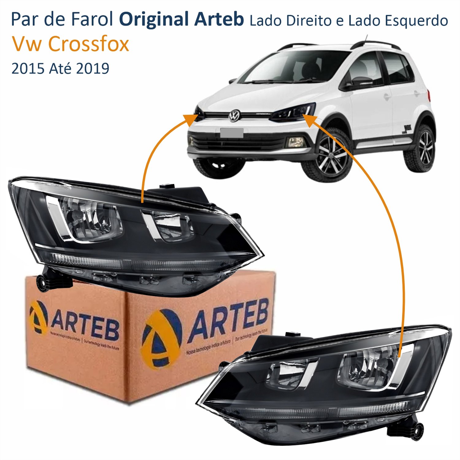Par de Farol Vw Crossfox 2015 Até 2019 Original Arteb Friso Preto