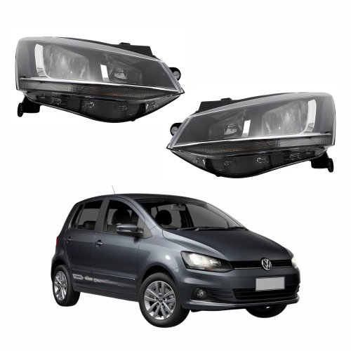Par de Farol Vw Fox 2015 Até 2019 Máscara Negra Friso Cromado