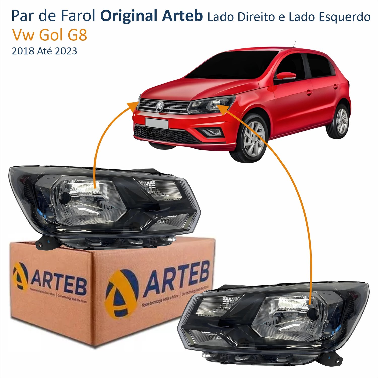 Par de Farol Vw Gol G8 2018 Até 2023 Original Arteb
