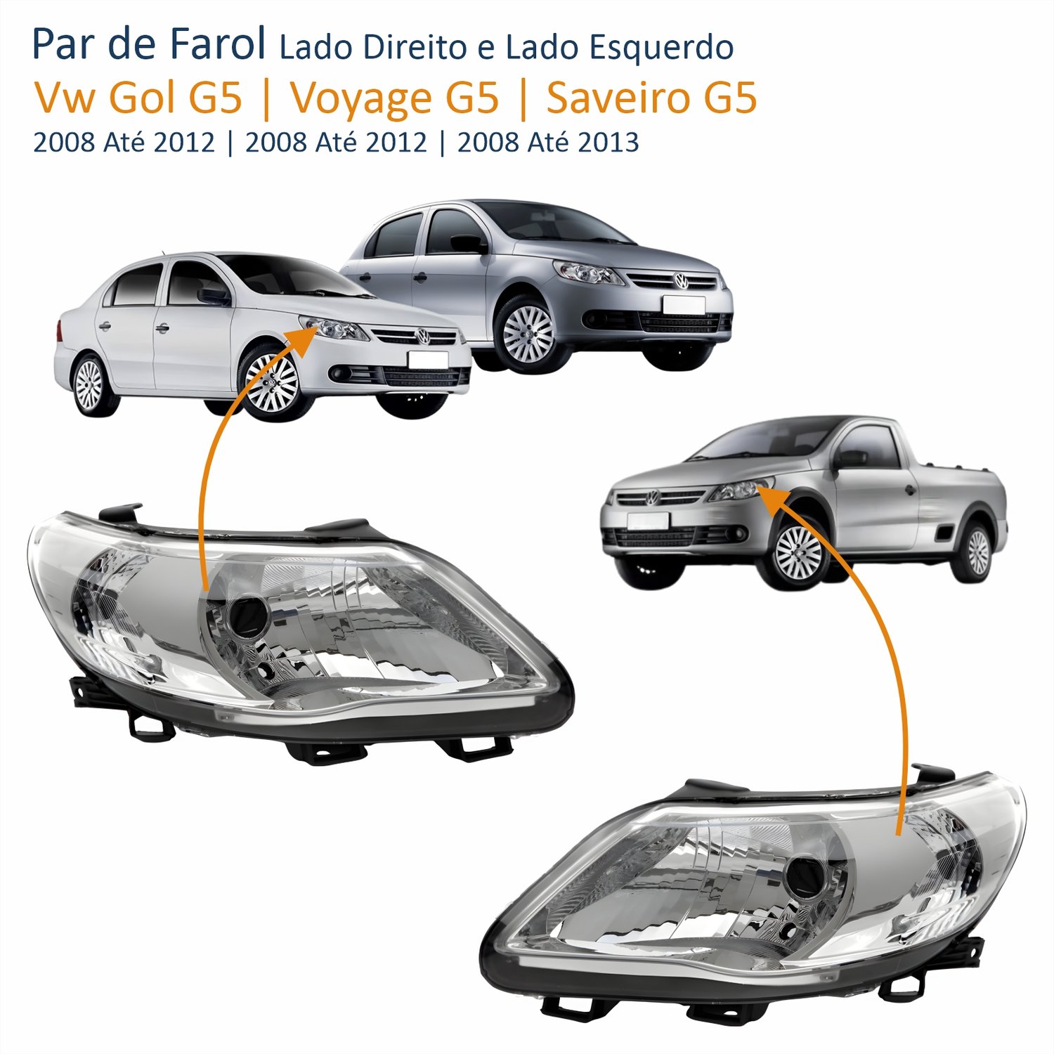 Farol Vw Gol Voyage G5 2008 Até 2012 Saveiro G5 2008 Até 2013 Máscara Cromada Lado Direito PassageiroLado: ÚnicoFarol Vw Gol Voyage G5 2008 Até 2012 Saveiro G5 2008 Até 2013 Máscara Cromada Lado Esquerdo MotoristaLado: Único