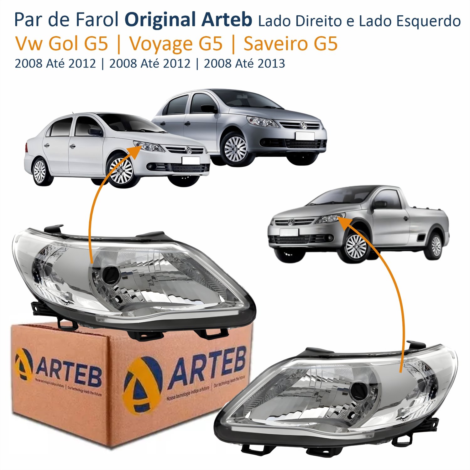 Farol Vw Gol Voyage G5 2008 Até 2012 Saveiro G5 2008 Até 2013 Original Arteb Máscara Cromada Lado Direito PassageiroLado: ÚnicoFarol Vw Gol Voyage G5 2008 Até 2012 Saveiro G5 2008 Até 2013 Original Arteb Máscara Cromada Lado Esquerdo MotoristaLado: Único