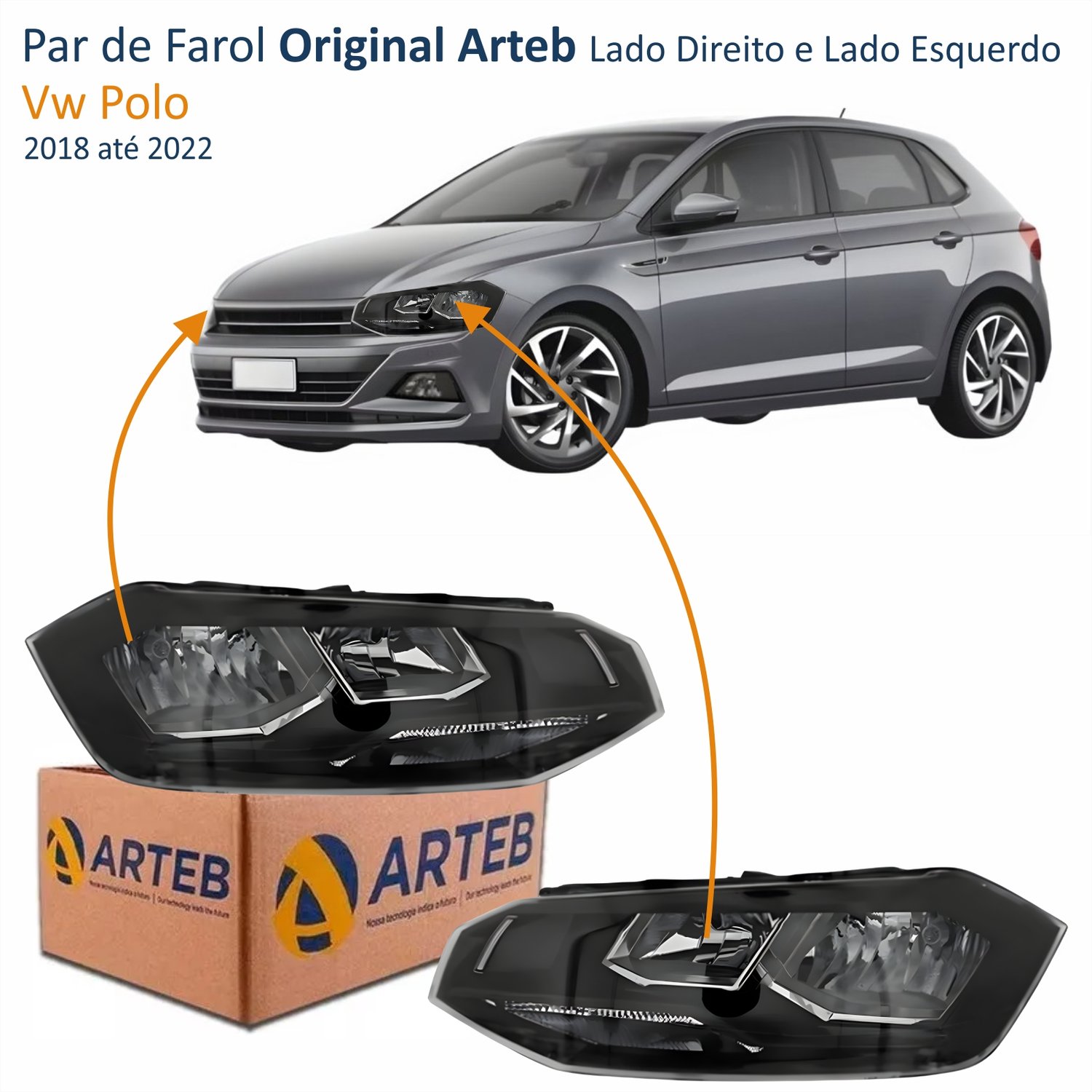 Par de Farol Vw Polo 2018 Até 2022 Original Arteb Máscara Negra Com Friso Preto
