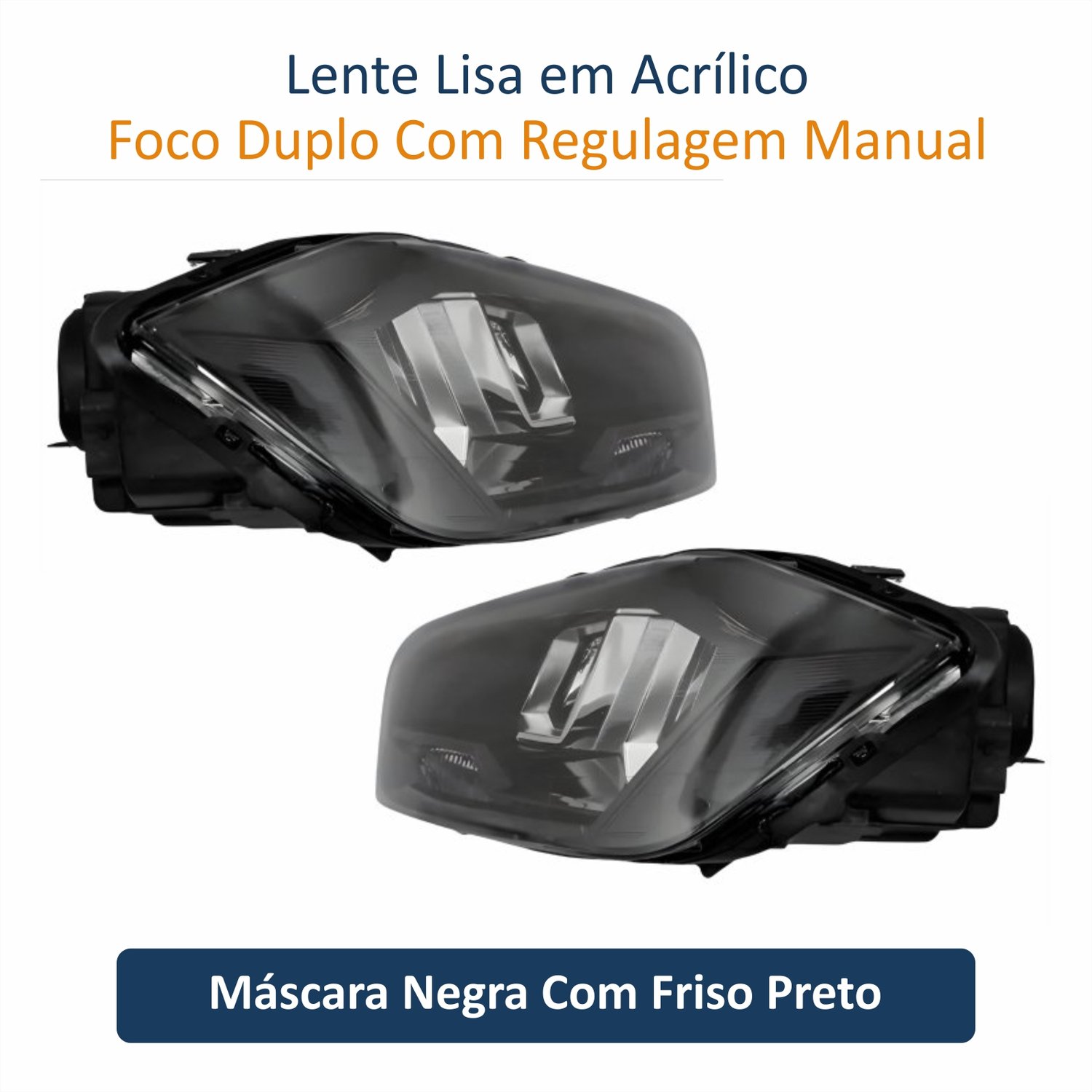 Par de Farol Vw Polo Virtus 2018 Até 2022 Original Arteb Máscara Negra Com Friso Preto