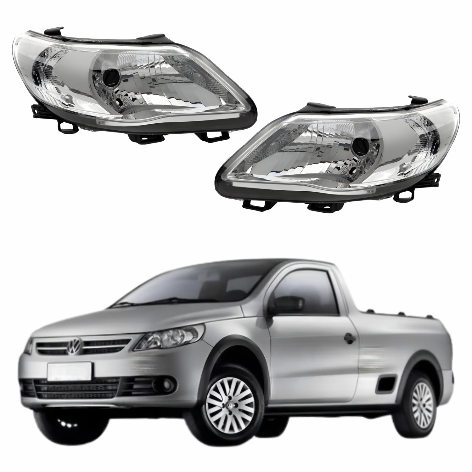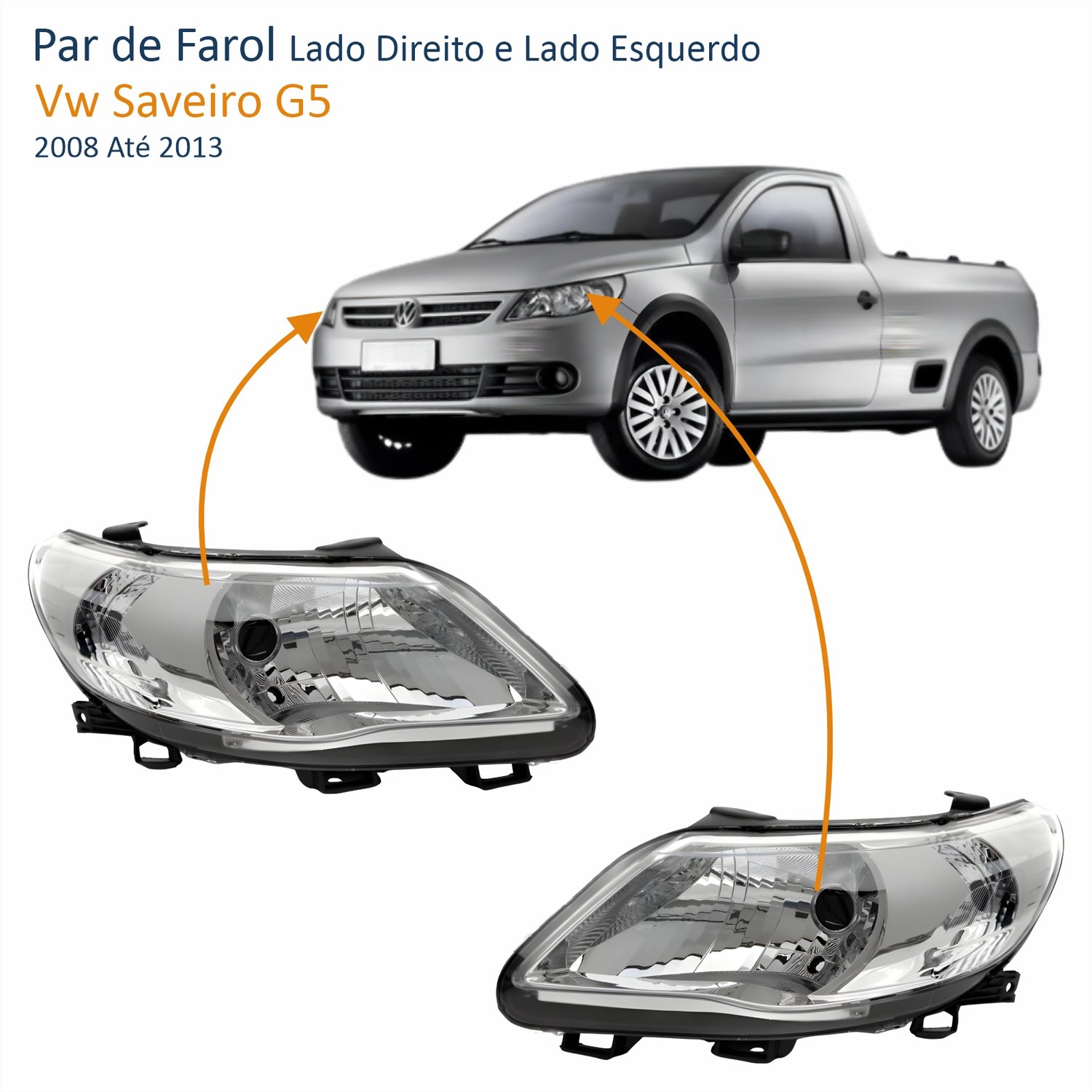 Par de Farol Vw Saveiro G5 2008 Até 2013 Máscara Cromada