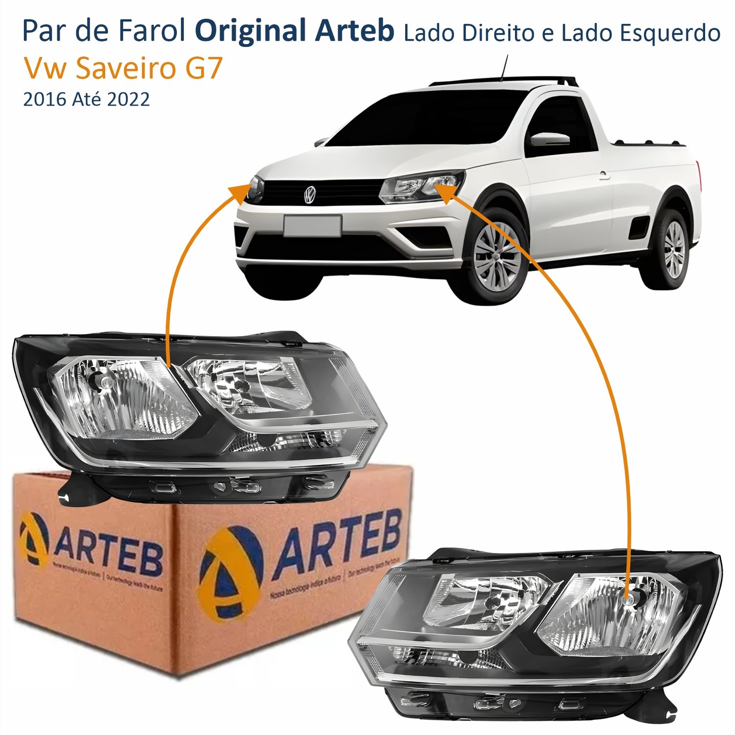 Par de Farol Vw Saveiro G7 2016 Até 2022 Original Arteb Foco Duplo