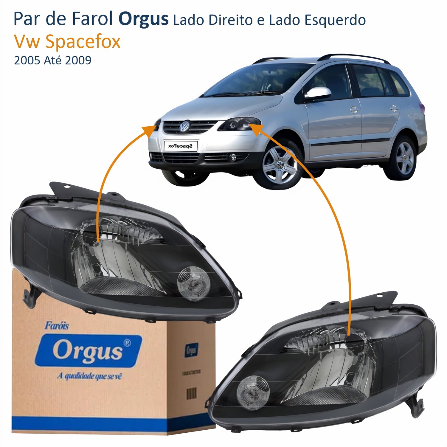Par de Farol Vw Spacefox 2005 Até 2009 ORGUS Máscara Negra