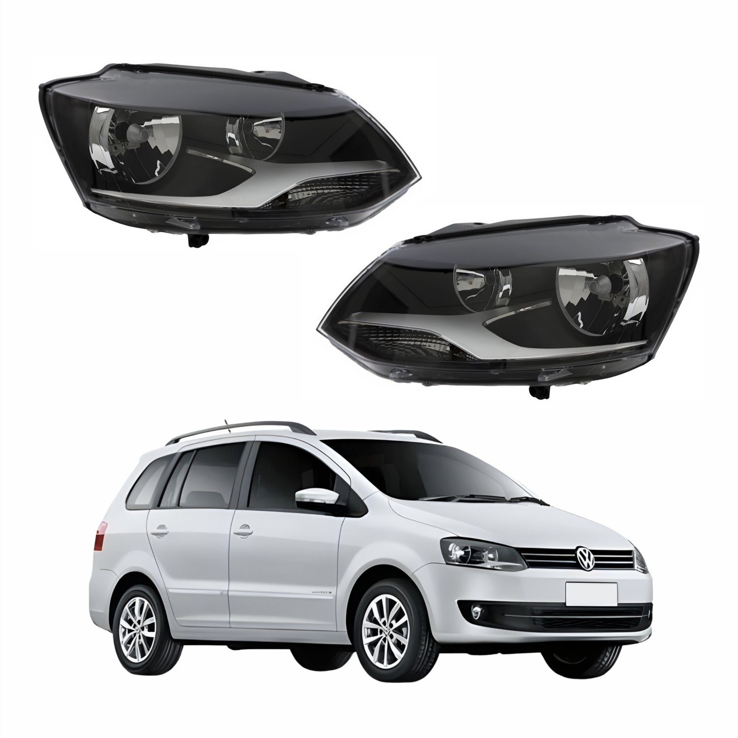 Par de Farol Vw Spacefox 2011 Até 2014 Máscara Negra