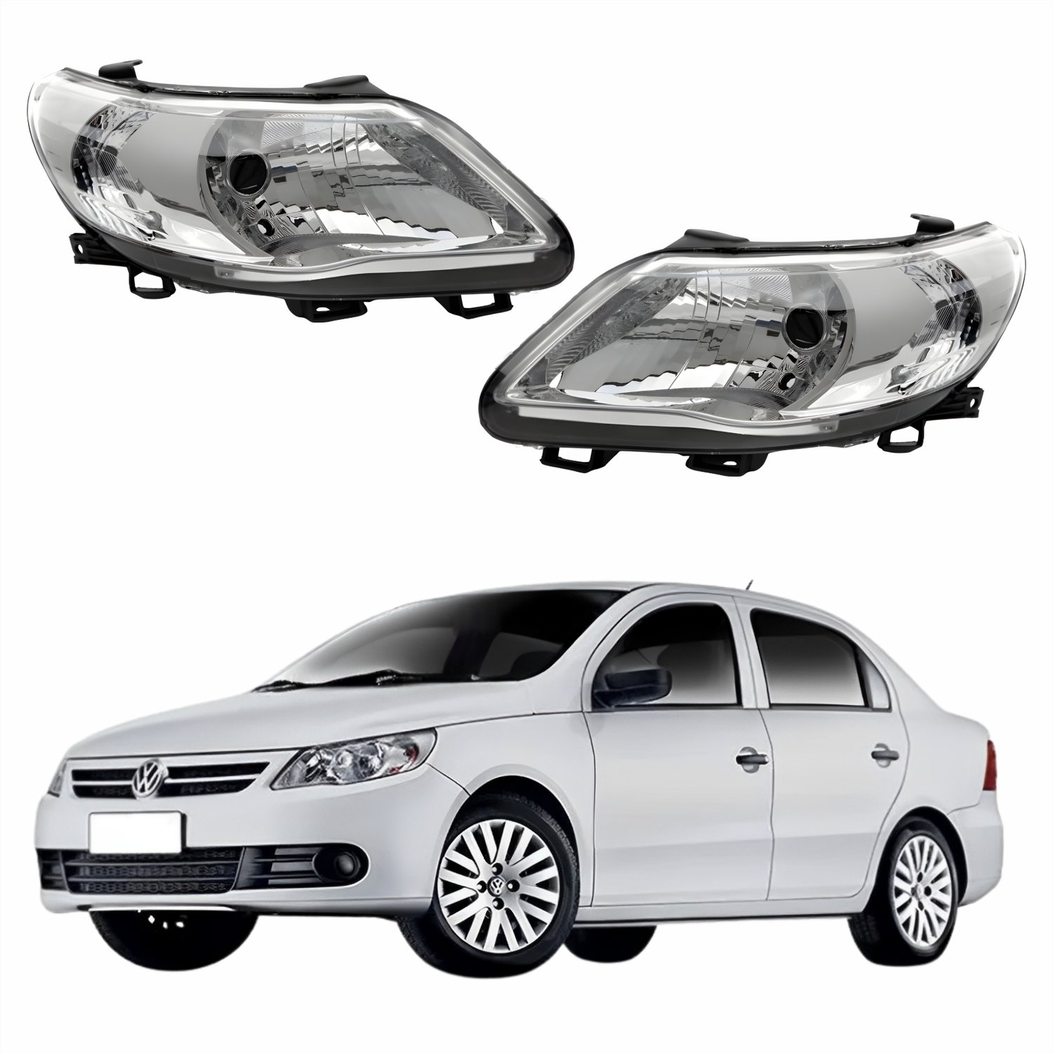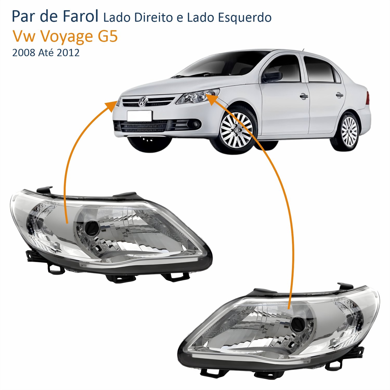 Par de Farol Vw Voyage G5 2008 Até 2012 Máscara Cromada