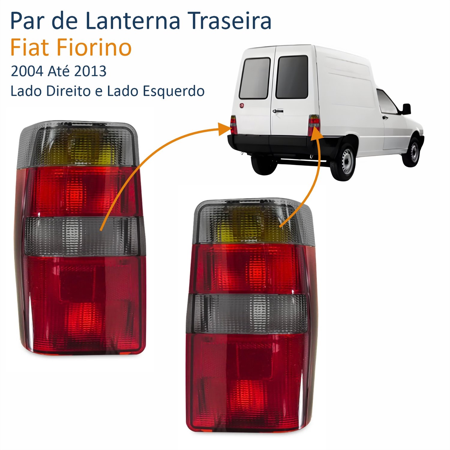 Lanterna Fiat Fiorino 2004 Até 2013 Fumê Lado Direito PassageiroTamanho: ÚnicoLanterna Fiat Fiorino 2004 Até 2013 Fumê Lado Esquerdo MotoristaTamanho: Único