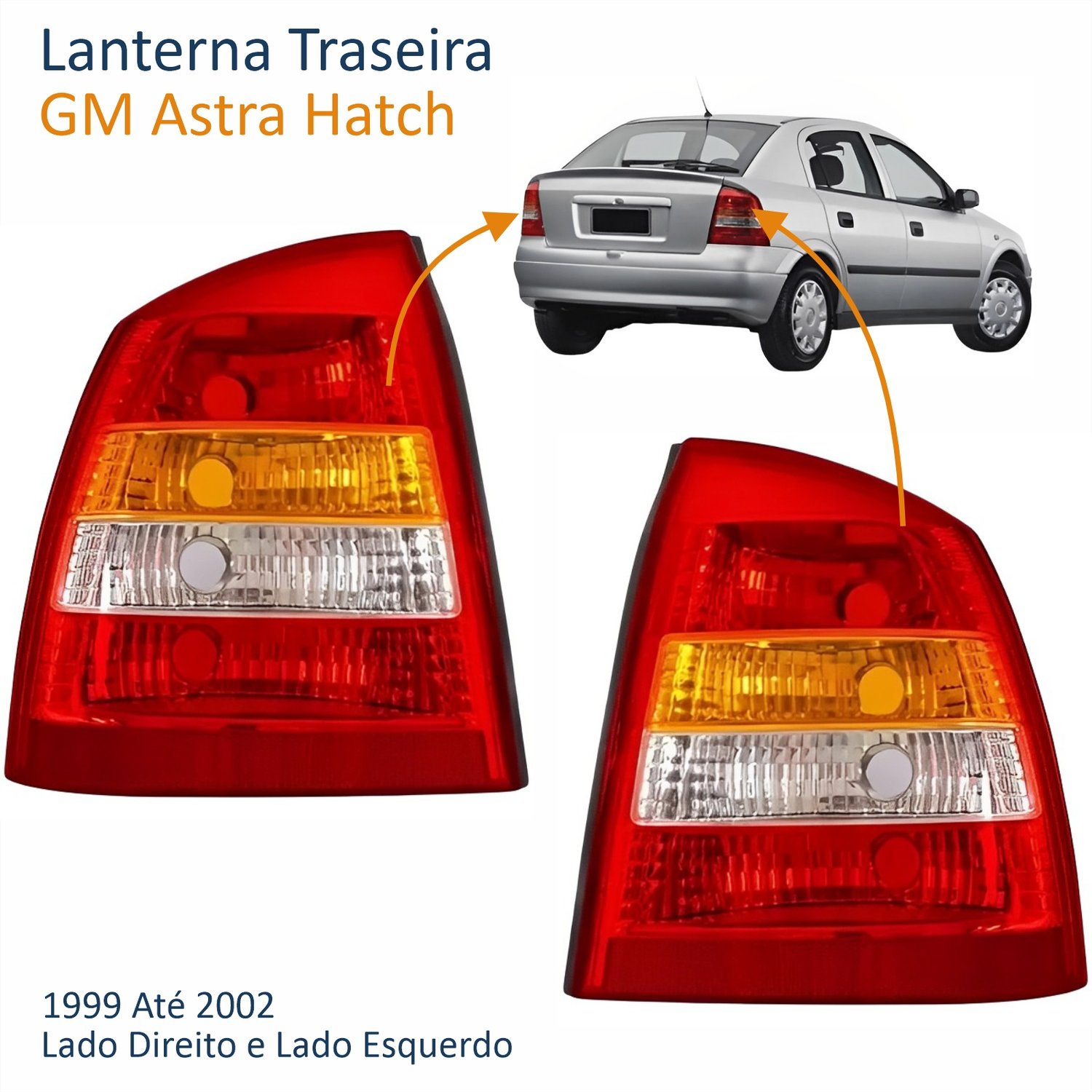 Lanterna GM Astra Hatch 1999 Até 2002 Tricolor Lado Direito PassageiroLado: ÚnicoLanterna GM Astra Hatch 1999 Até 2002 Tricolor Lado Esquerdo MotoristaLado: Único