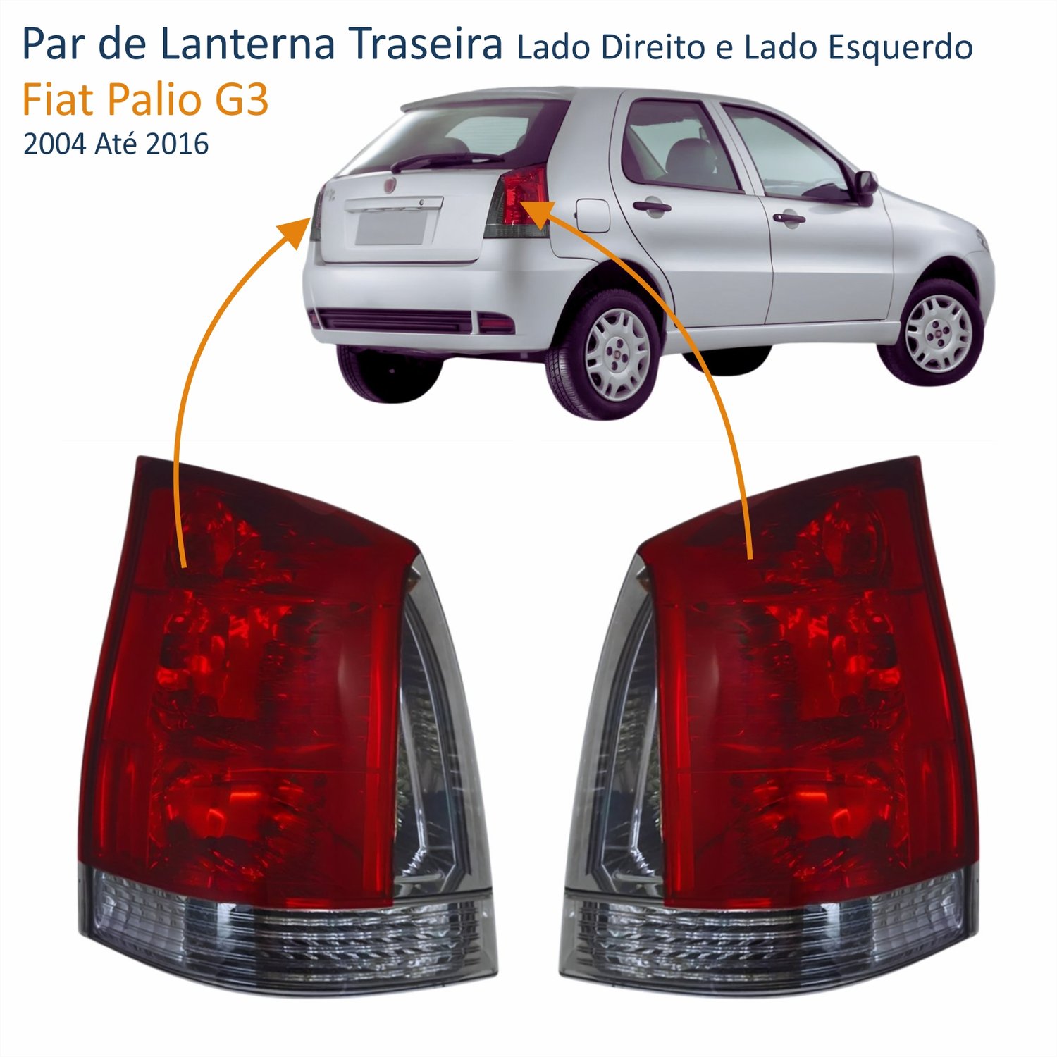 Lanterna Traseira Fiat Palio G3 2004 Até 2016 Fumê Lado Direito PassageiroLado: ÚnicoLanterna Traseira Fiat Palio G3 2004 Até 2016 Fumê Lado Esquerdo MotoristaLado: Único