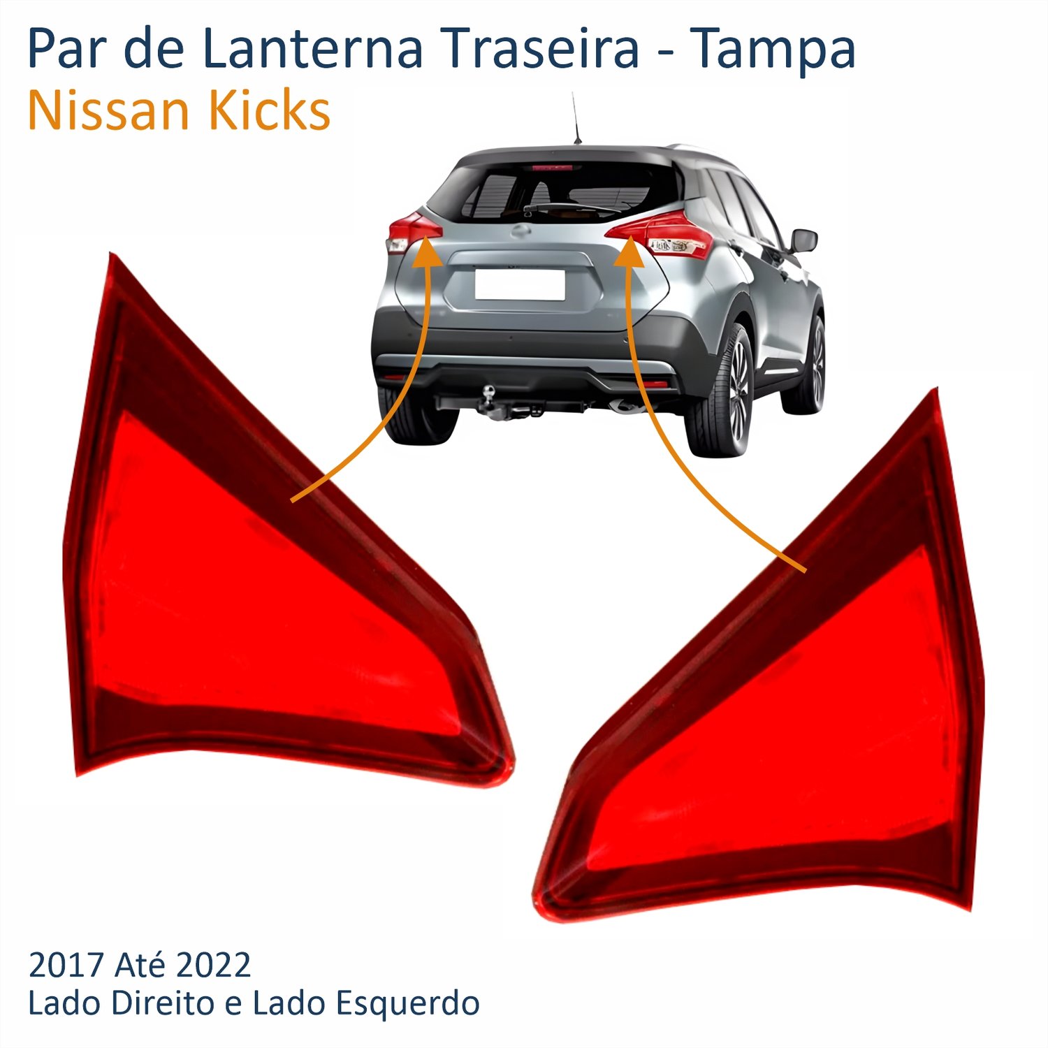 Lanterna Traseira Nissan Kicks 2017 Até 2022 Tampa Lado Direito PassageiroTamanho: ÚnicoLanterna Traseira Nissan Kicks 2017 Até 2022 Tampa Lado Esquerdo MotoristaTamanho: Único