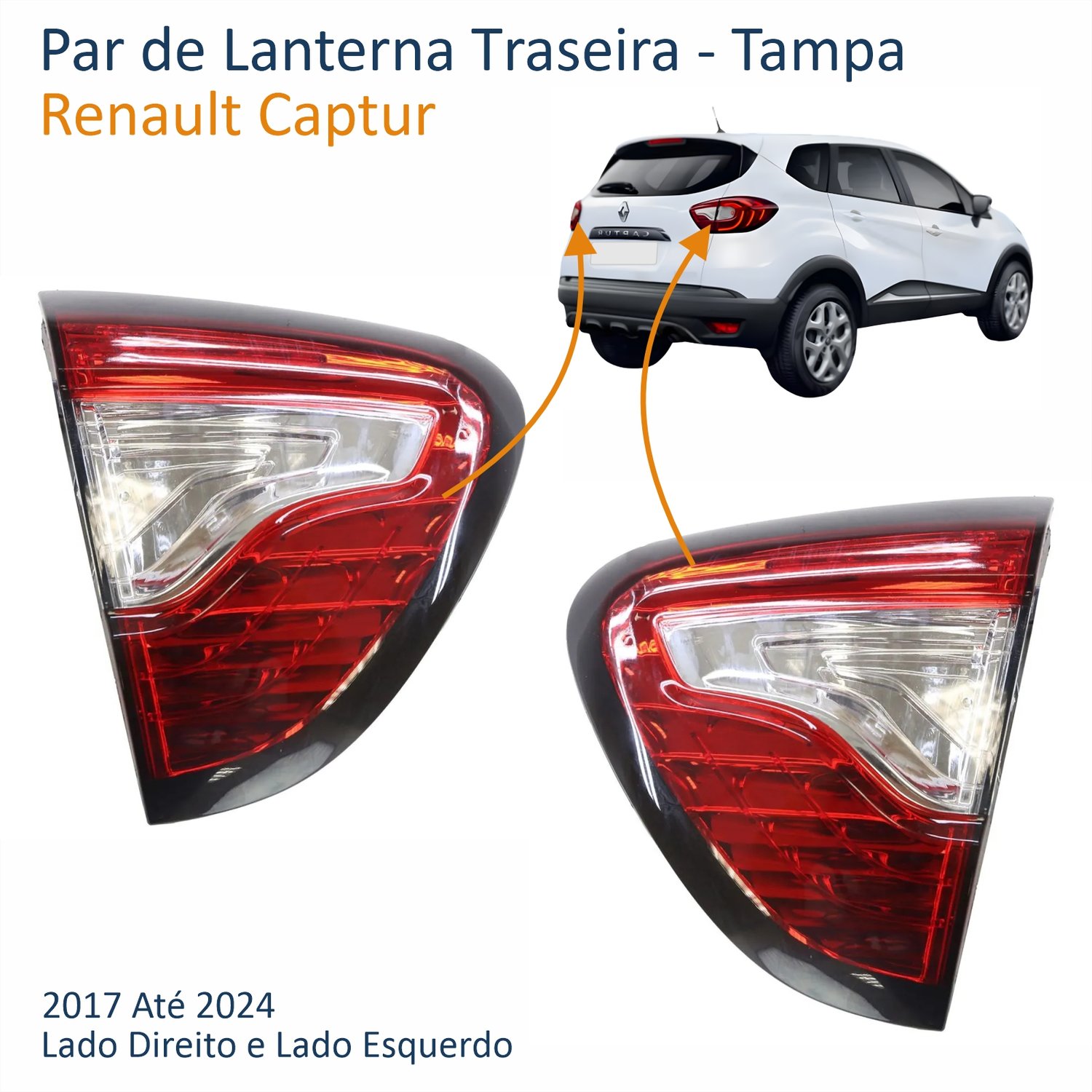 Lanterna Traseira Renault Captur 2017 Até 2024 Tampa Lado Direito PassageiroLado: ÚnicoLanterna Traseira Renault Captur 2017 Até 2024 Tampa Lado Esquerdo MotoristaLado: Único