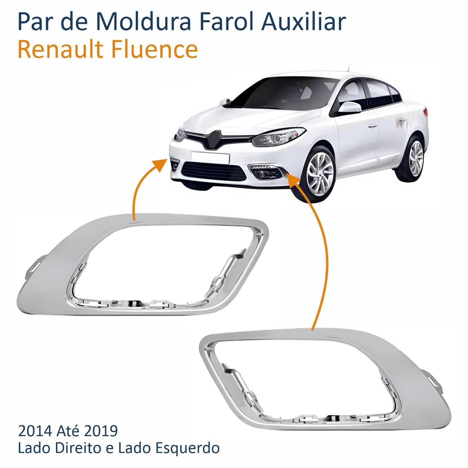 Par de Moldura Farol Auxiliar Renault Fluence 2014 Até 2019 Cromado