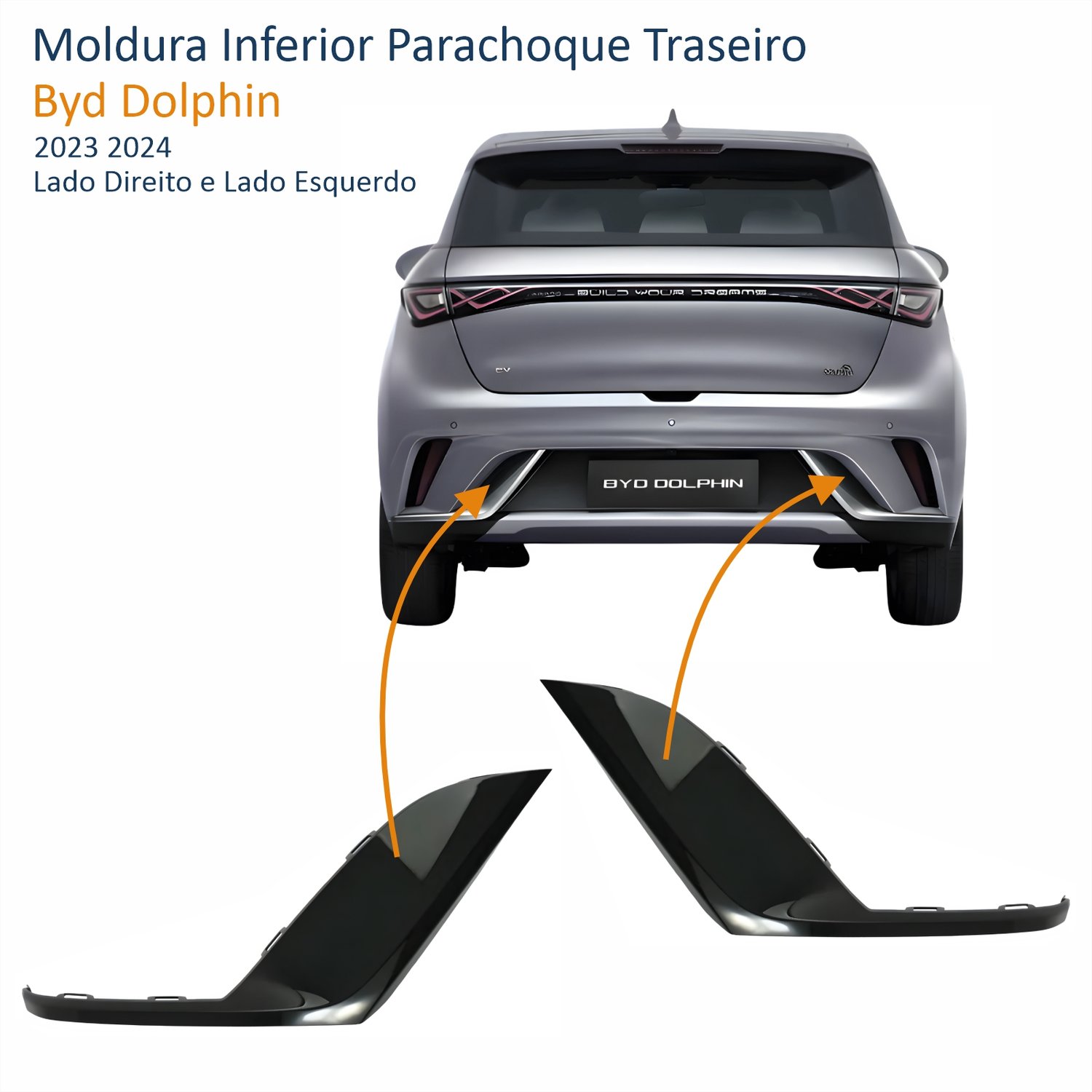 Moldura Inferior Parachoque Traseiro Byd Dolphin 2023 2024 Lado Direito Passageiro Quant: 1xMoldura Inferior Parachoque Traseiro Byd Dolphin 2023 2024 Lado Esquerdo Motorista Quant: 1x