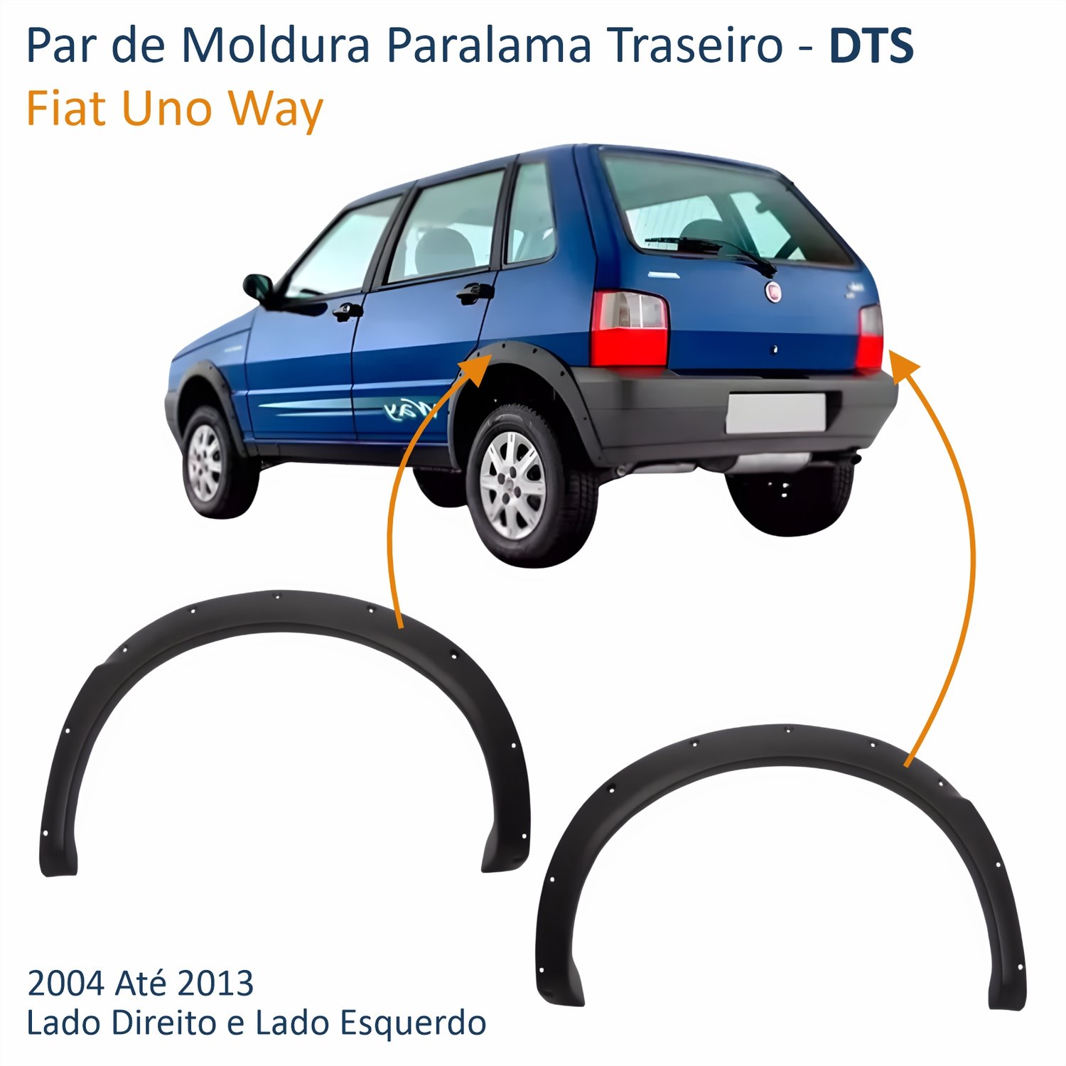 Par de Moldura Paralama Traseiro Fiat Uno Way 2004 Até 2013 DTS Preto