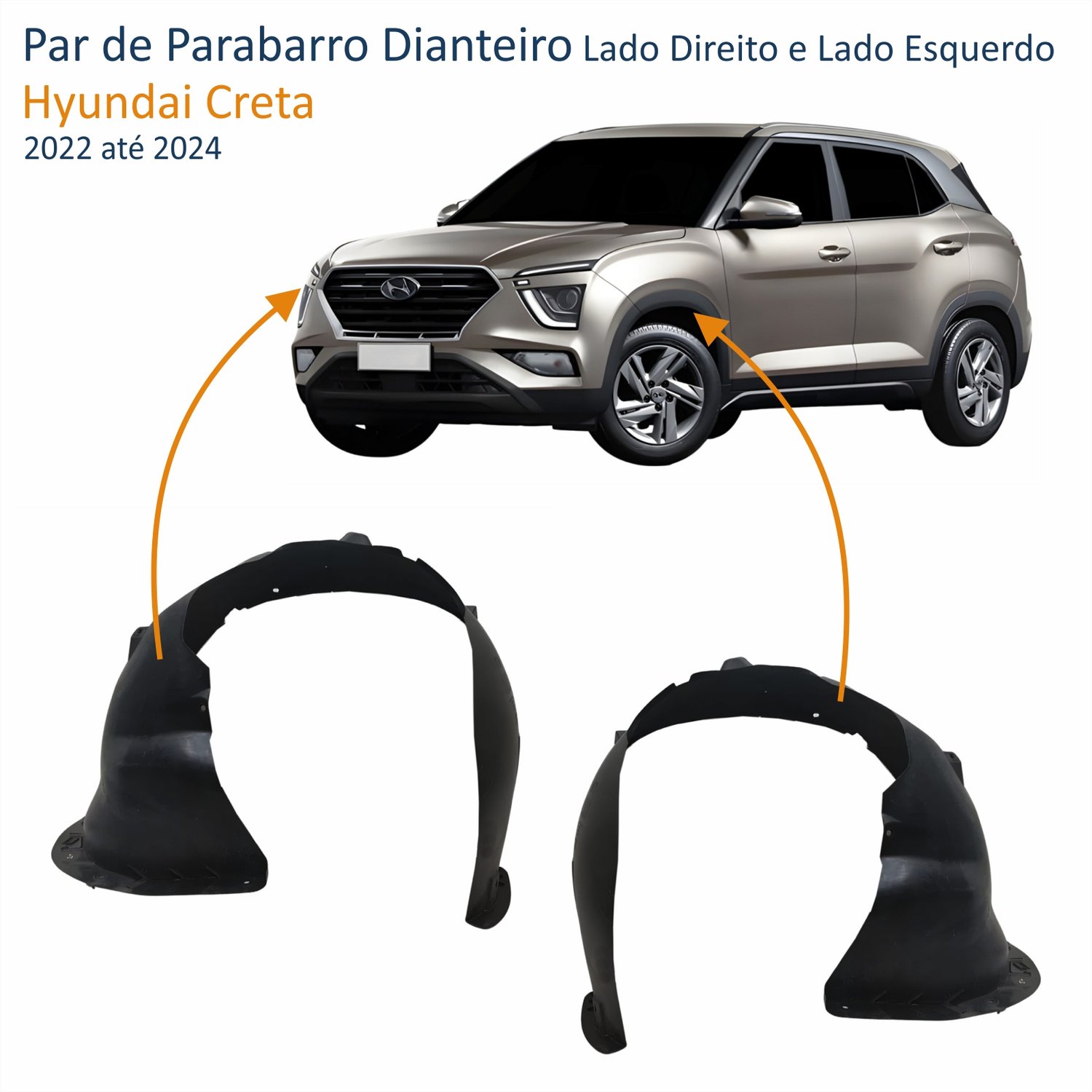 Parabarro Dianteiro Hyundai Creta 2022 Até 2024 Lado Direito PassageiroLado: ÚnicoParabarro Dianteiro Hyundai Creta 2022 Até 2024 Lado Esquerdo MotoristaLado: Único